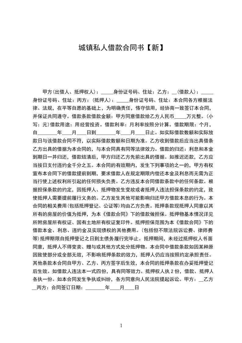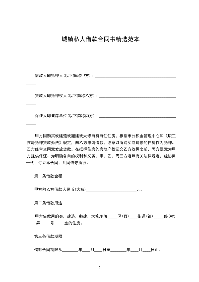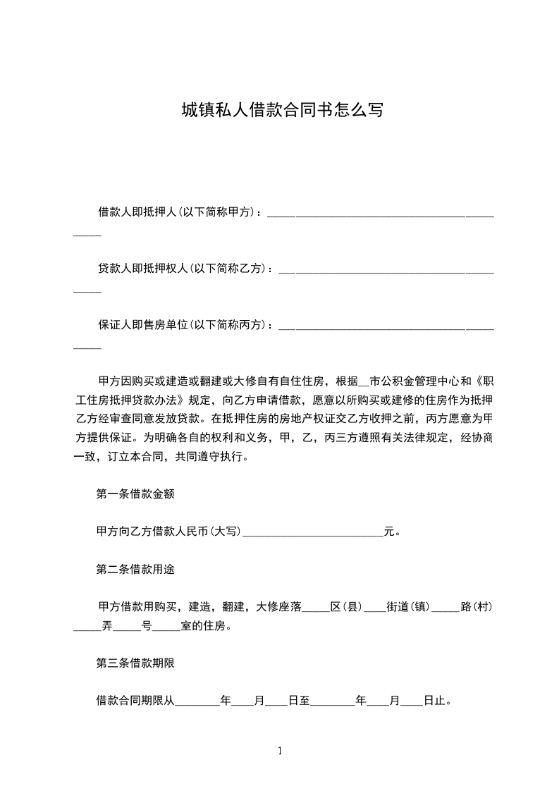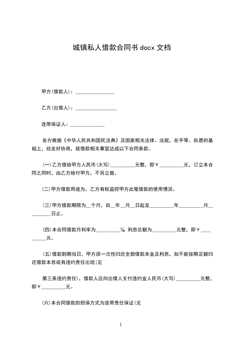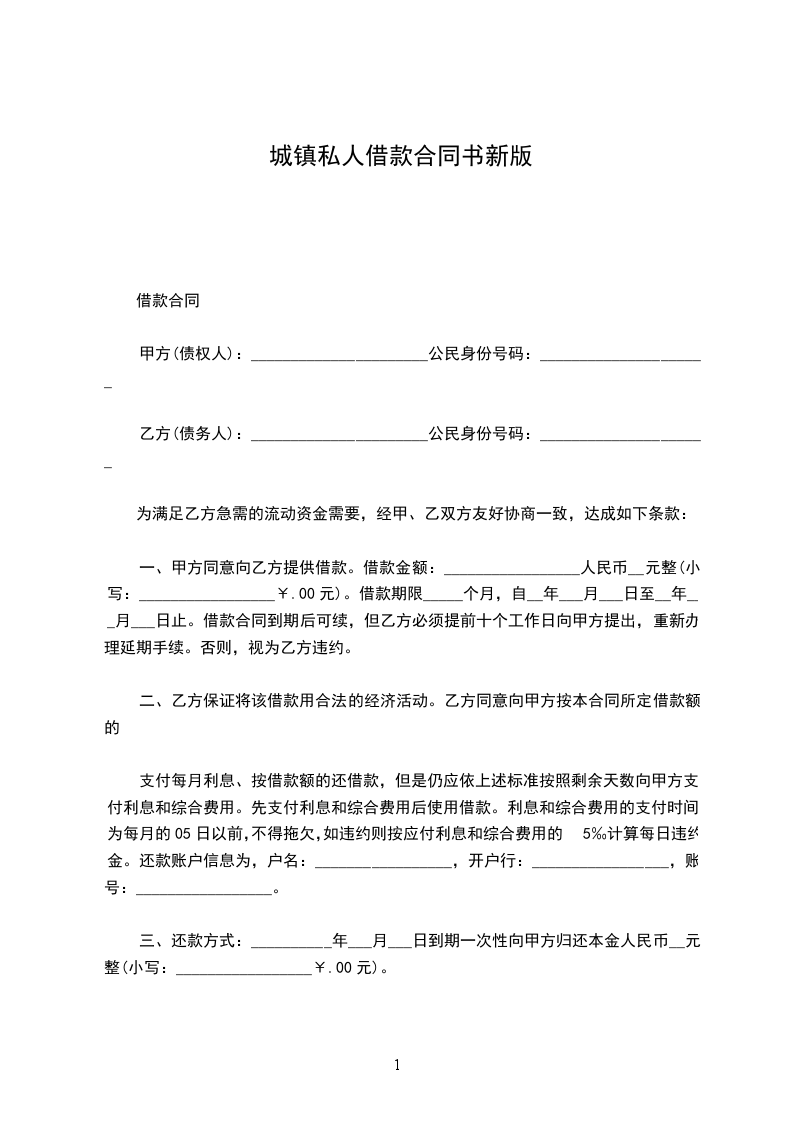 (一)乙方借给甲方人民币(大写)__________元整,即¥__________元,订立本合同之同时,由乙方给付甲方,不另立据。