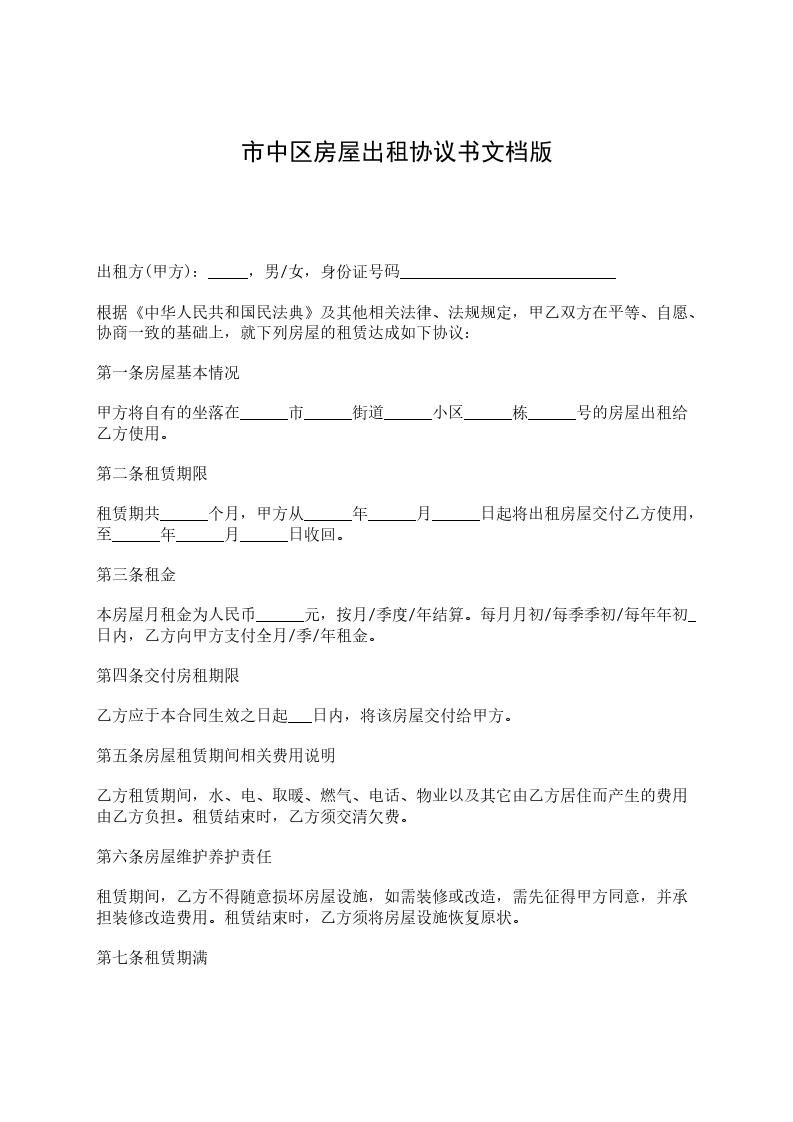 七、由于乙方人为原因造成该房屋及其配套设施损坏的,由乙方承担赔偿责任,向甲方支付赔偿损失及维修费用。