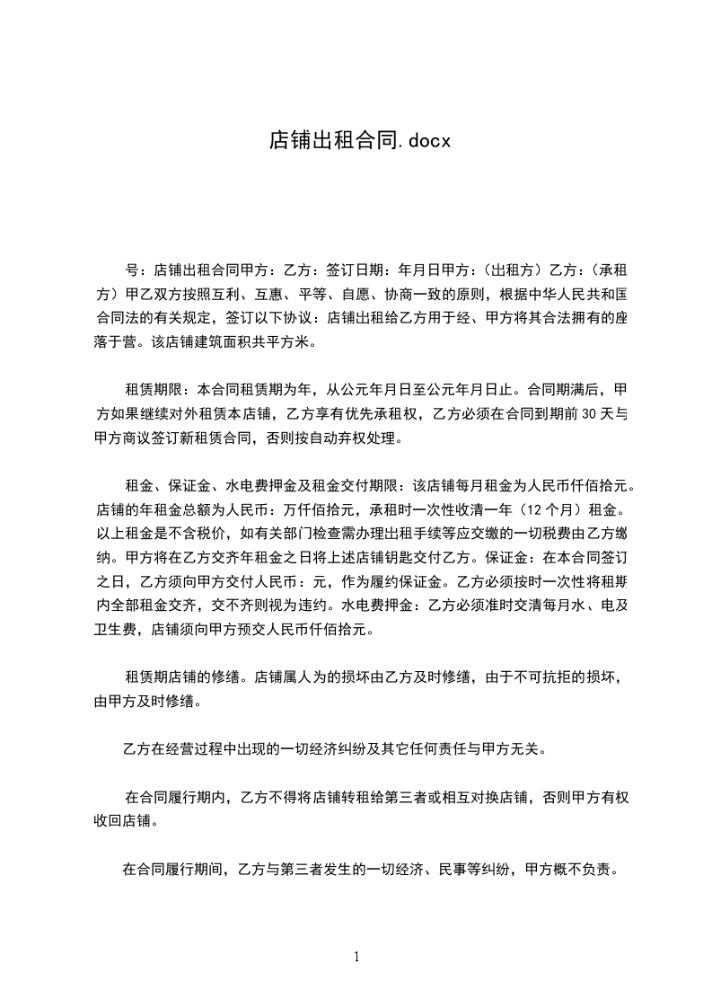 甲乙双方就承租出租店铺有关事项签订如下合同: