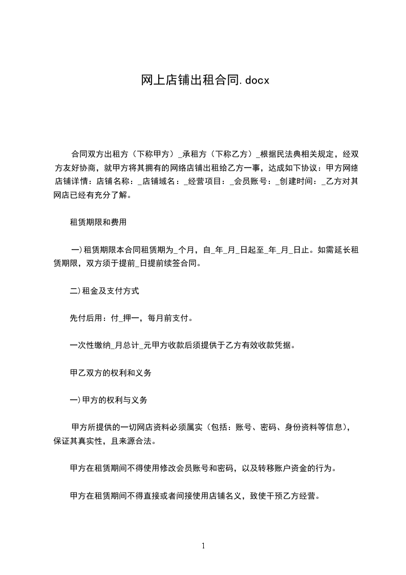 出租人:______________(以下简称甲方)