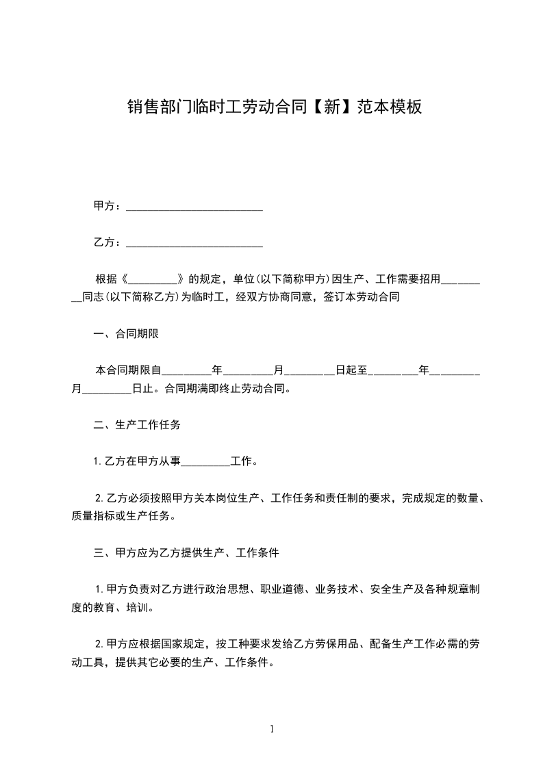 根据《_________》的规定,单位(以下简称甲方)因生产、工作需要招用_________同志(以下简称乙方)为临时工,经双方协商同意,签订本劳动合同