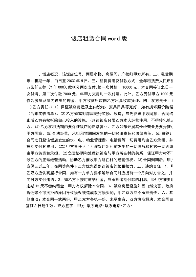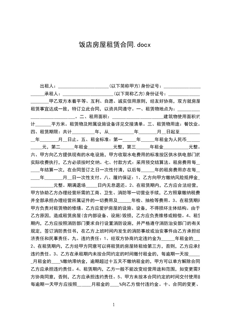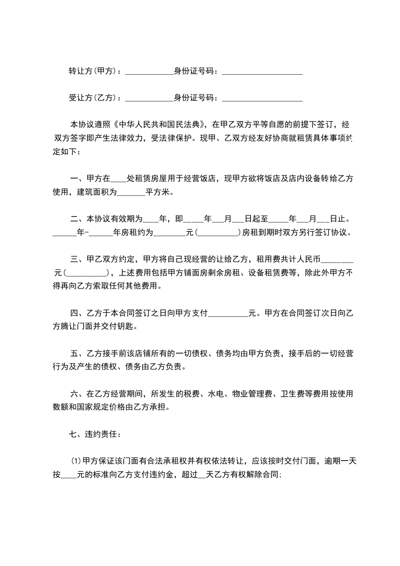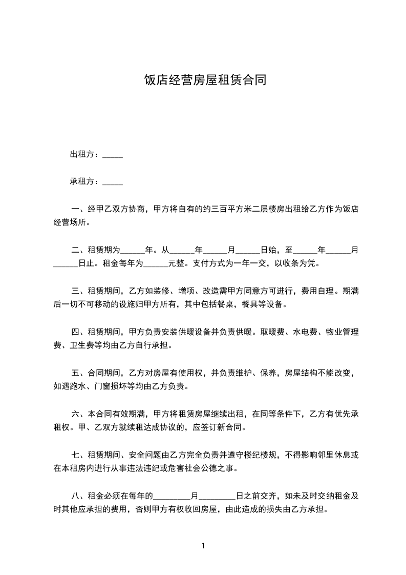 2.乙方向甲方承诺,租赁该房屋仅作为饭店经营使用。