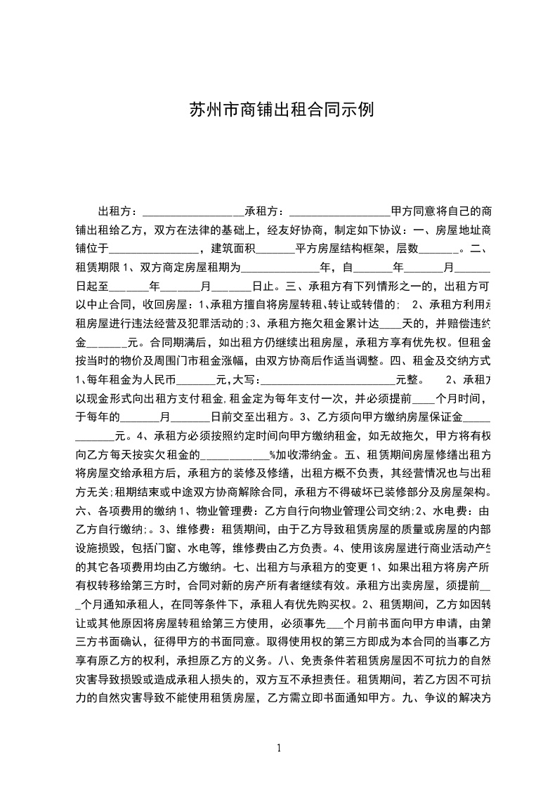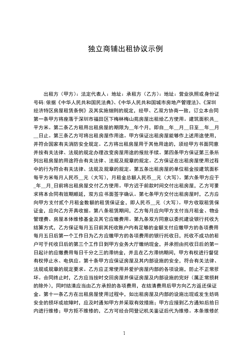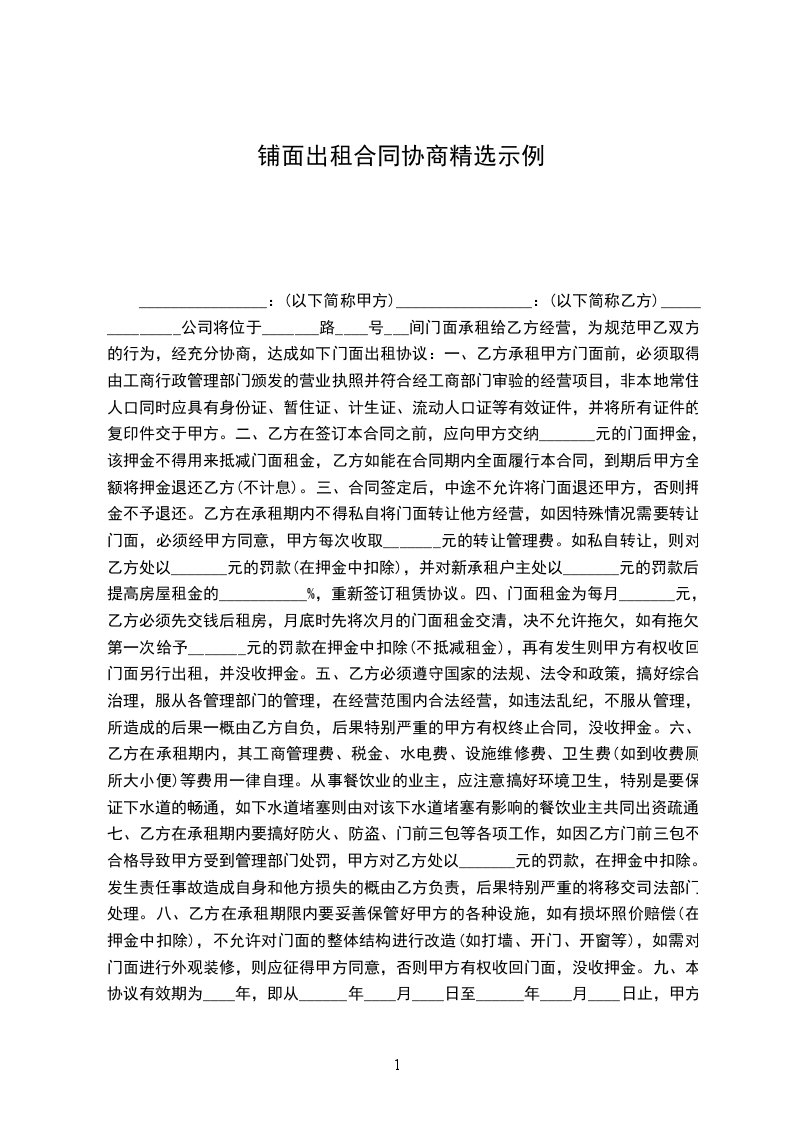 甲方出租的商铺坐落于____街____号,建筑面积______平方米。