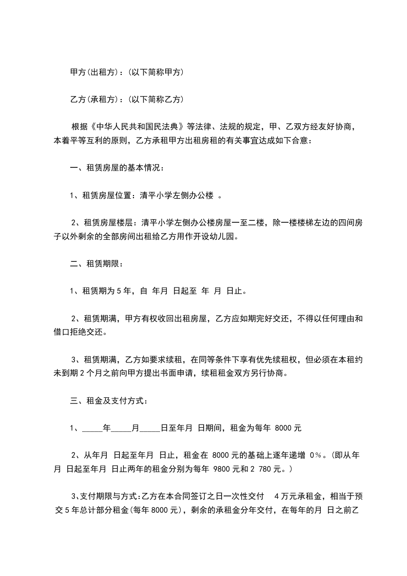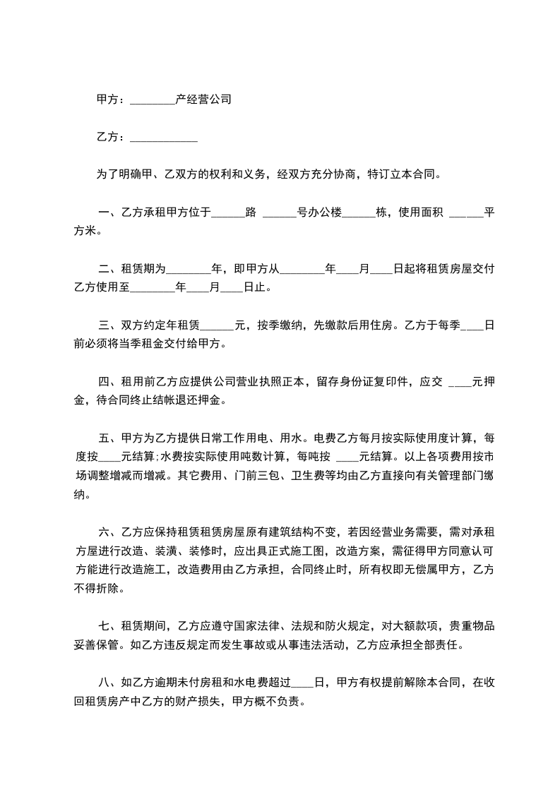 第五条甲方将向乙方出租_________园_________号楼,建筑面积共计约为_________平方米,作为乙方_________的经营场所。(实际面积以有关部门出具的面积勘测表为准)