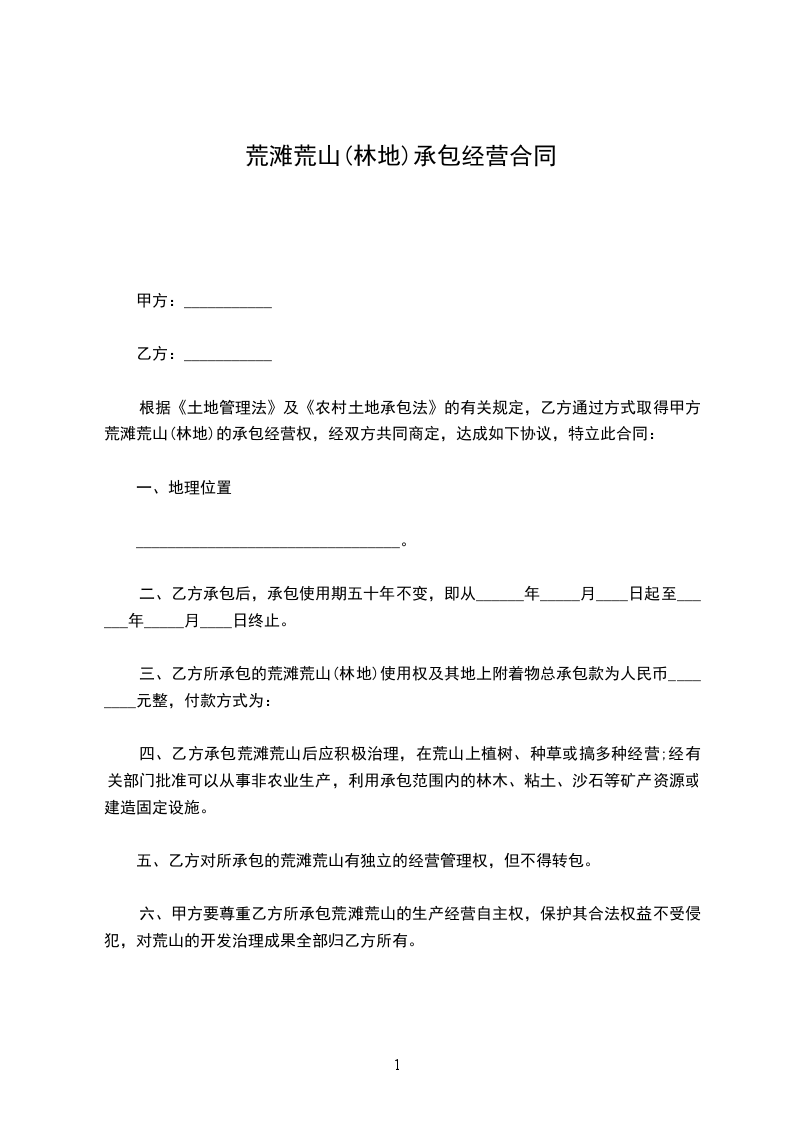 根据《土地管理法》及《农村土地承包法》的有关规定,乙方通过方式取得甲方荒滩荒山(林地)的承包经营权,经双方共同商定,达成如下协议,特立此合同: