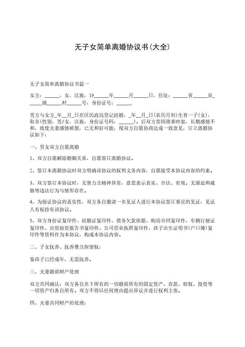 女方:_____,身份证号:_____________________,民族:族,工作单位:_____________________,现住:_____省_____市_____区_____路_____栋_____单元______号。