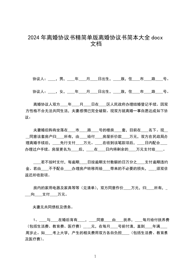 结婚证号码:__________。因双方性格不合无法共同生活,夫妻感情已完全破裂,现双方经协商达成如下离婚协议: