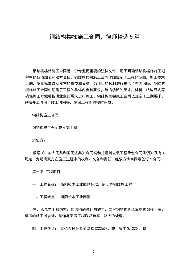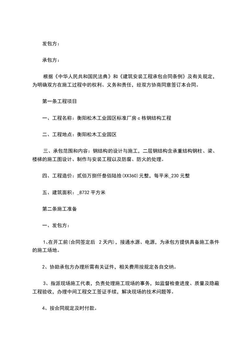 四、工程造价:贰佰万捌仟叁佰陆拾(XX360)元整,每平米_230元整