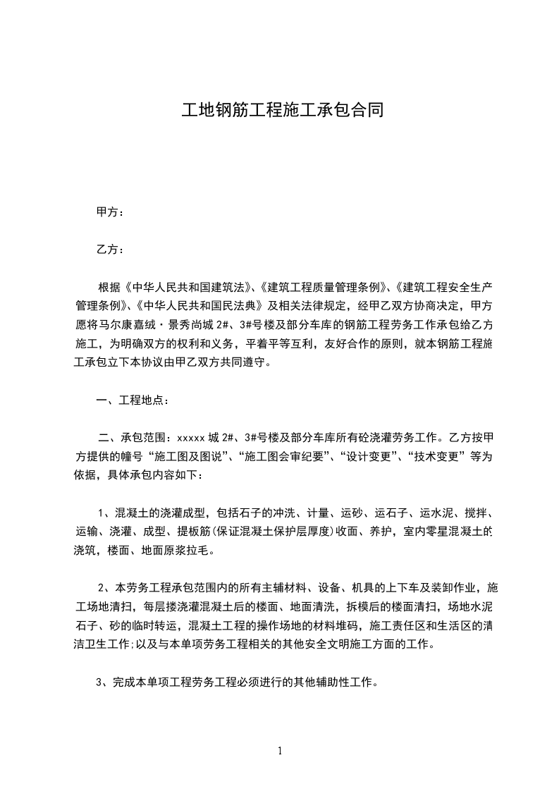 根据《中华人民共和国建筑法》、《建筑工程质量管理条例》、《建筑工程安全生产管理条例》、《中华人民共和国民法典》及相关法律规定,经甲乙双方协商决定,甲方愿将马尔康嘉绒·景秀尚城2#、3#号楼及部分车库的钢筋工程劳务工作承包给乙方施工,为明确双方的权利和义务,平着平等互利,友好合作的原则,就本钢筋工程施工承包立下本协议由甲乙双方共同遵守。
