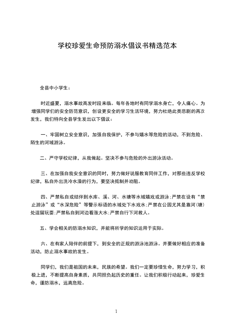 为积极响应学校近期在学生中开展防溺水安全教育活动,第__届学生会全体成员在此向同学们发出倡议,珍爱生命,预防溺水,努力杜绝溺水悲剧的发生,我们应做好以下几点: