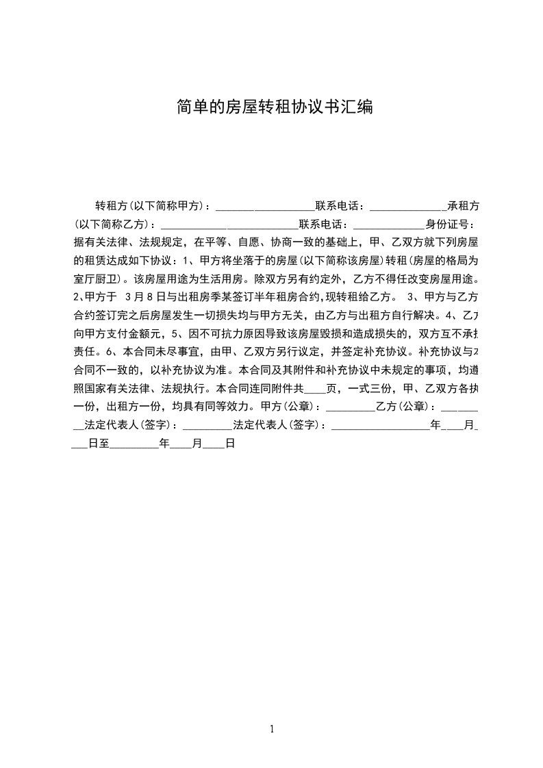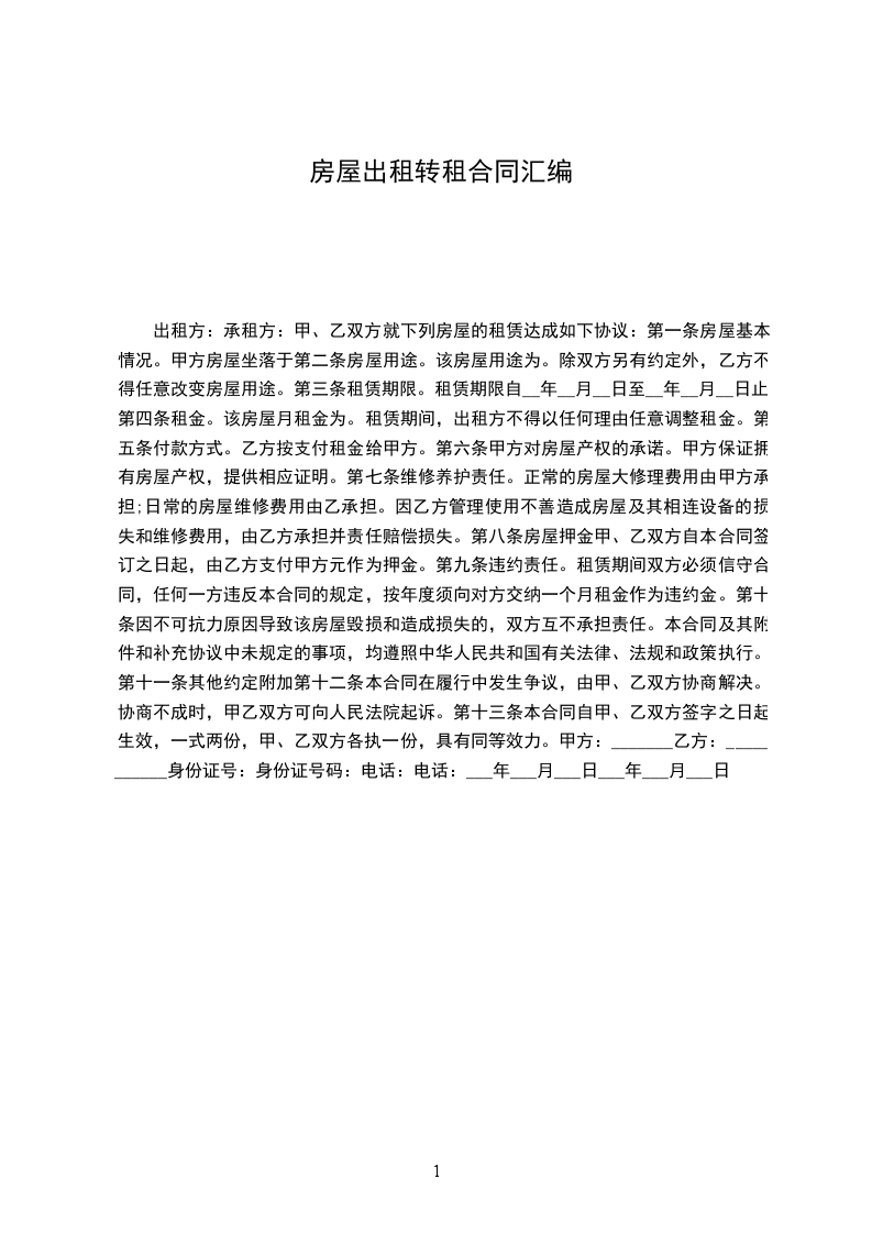甲方愿意将房屋转租给乙方。双方根据国家相关法律、法规,经协商一致,订立本合同,详细情况如下: