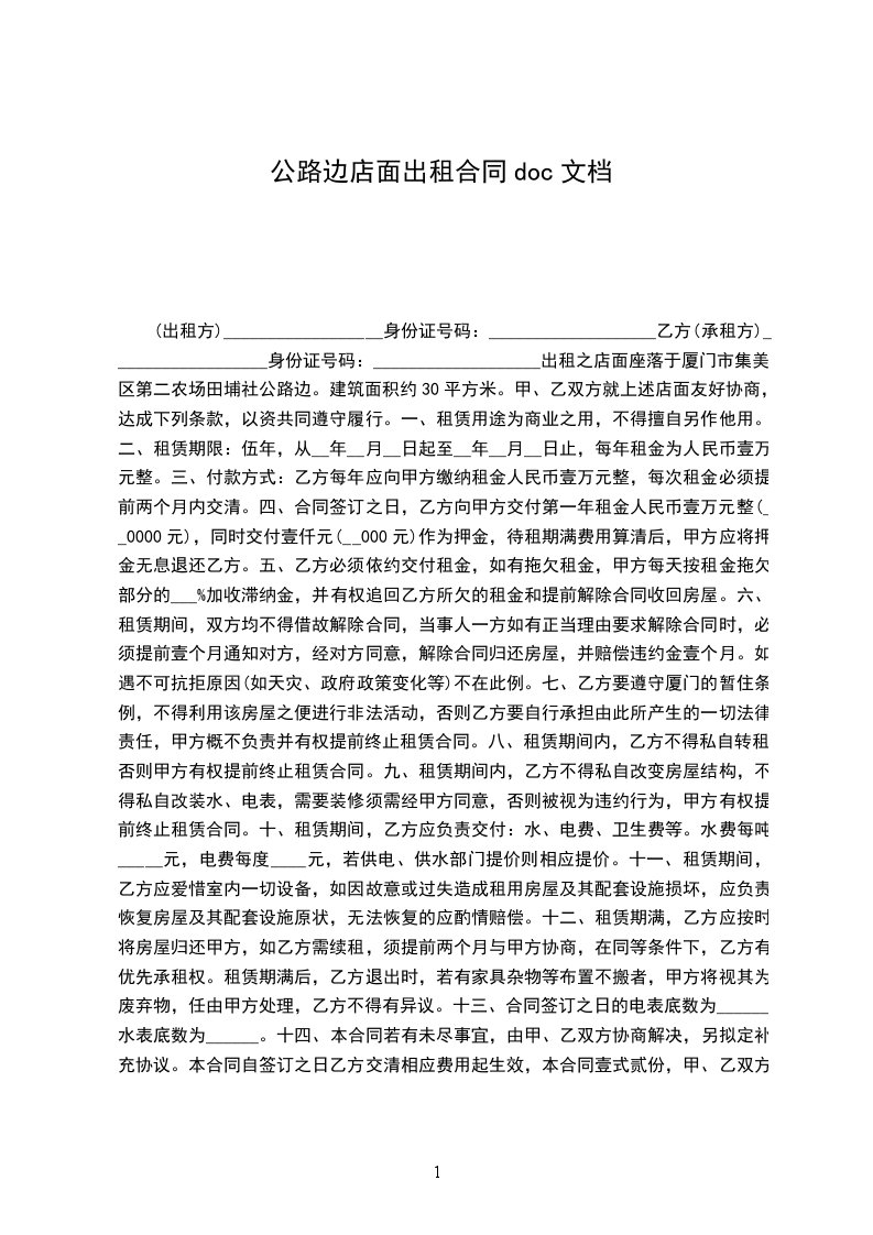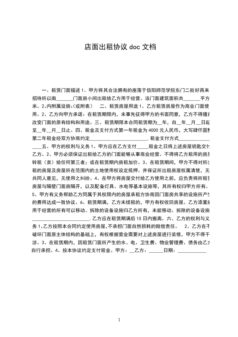 3、租金,每年元,共计元整。签定合同时一次性交清。