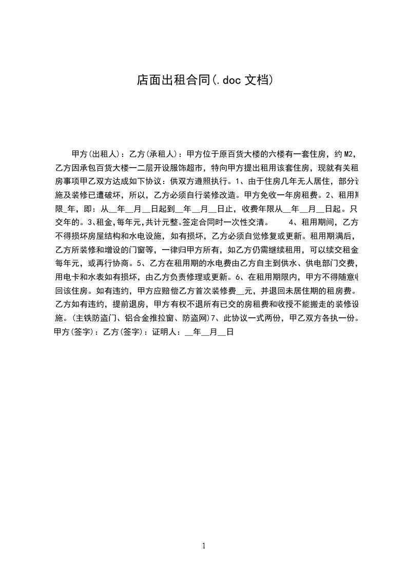 甲方位于原百货大楼的六楼有一套住房,约M2,乙方因承包百货大楼一二层开设服饰超市,特向甲方提出租用该套住房,现就有关租房事项甲乙双方达成如下协议:供双方遵照执行。