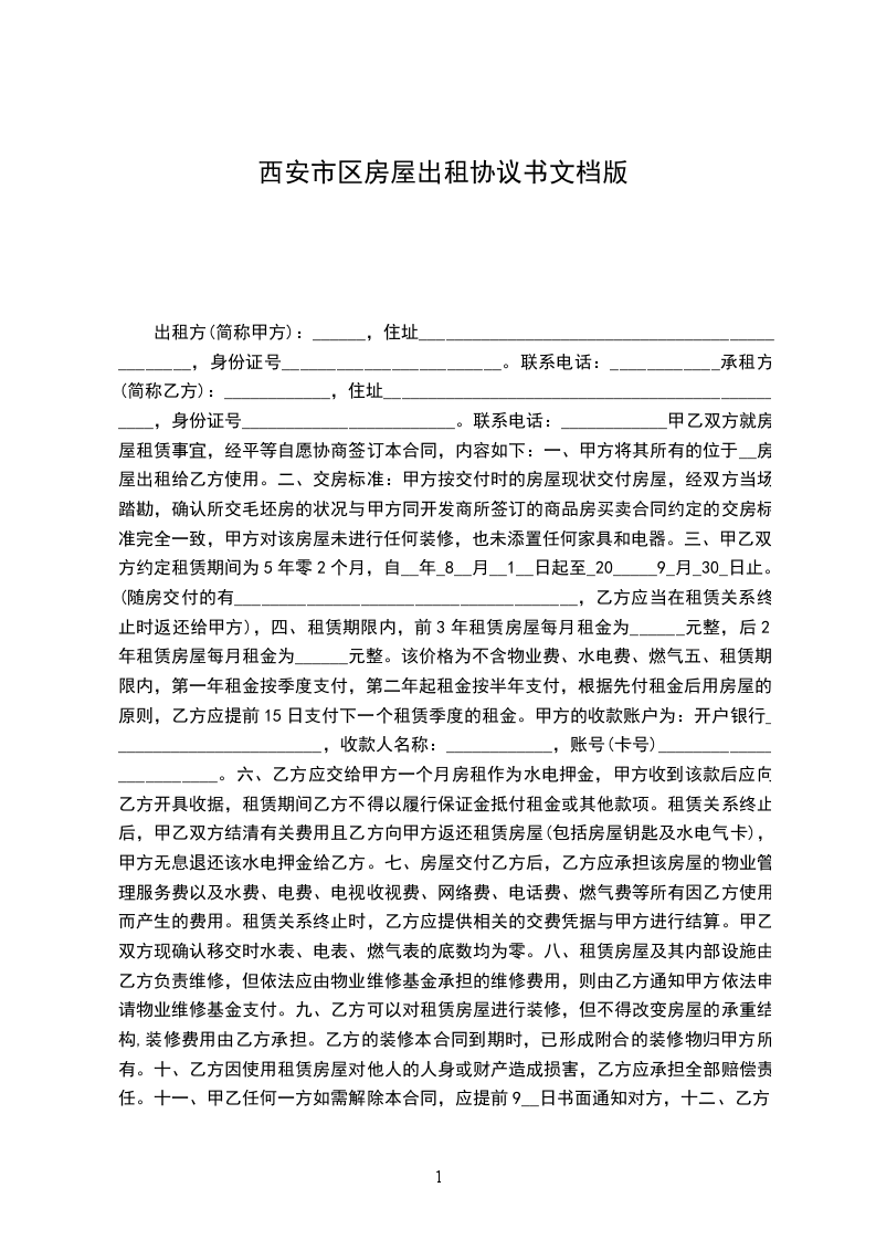 1、租赁期自____年__月__日起至____年__月__日止。