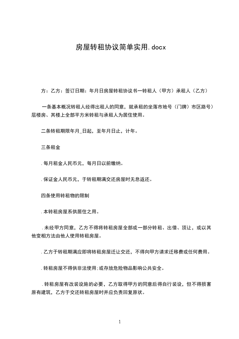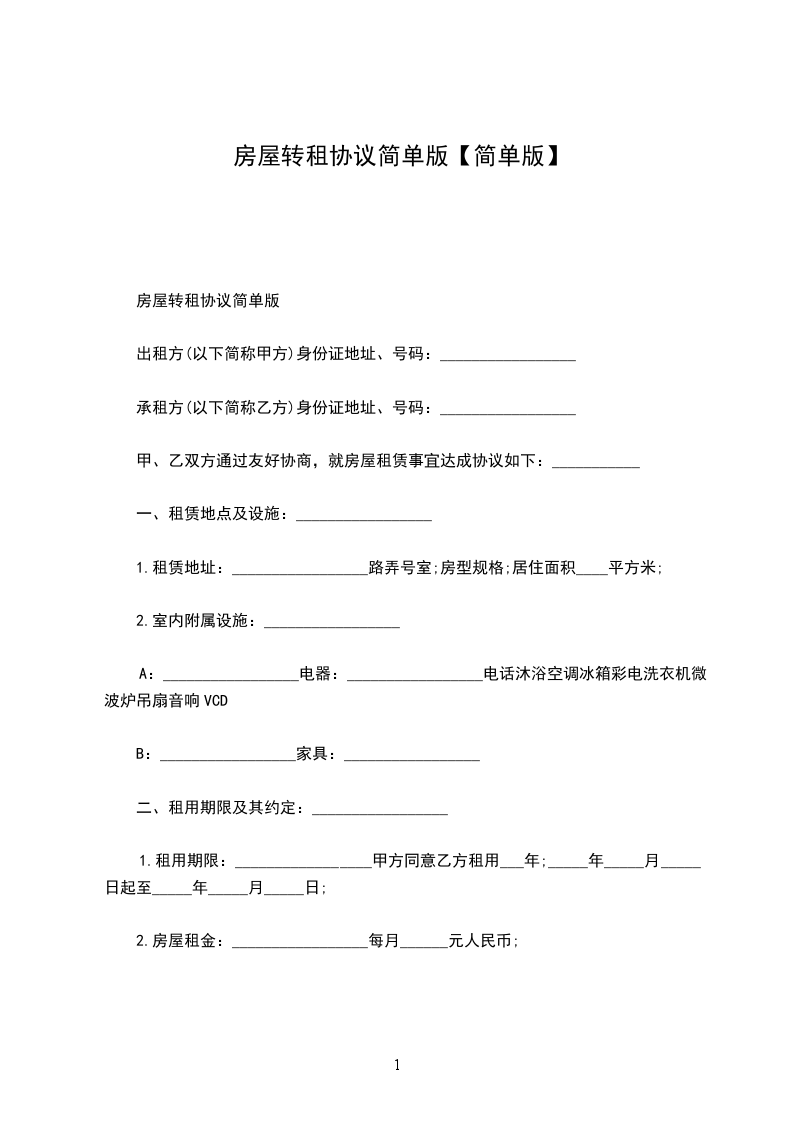 出租方(简称甲方):_____承租方(简称乙方):_____身份证号码:身份证号码: