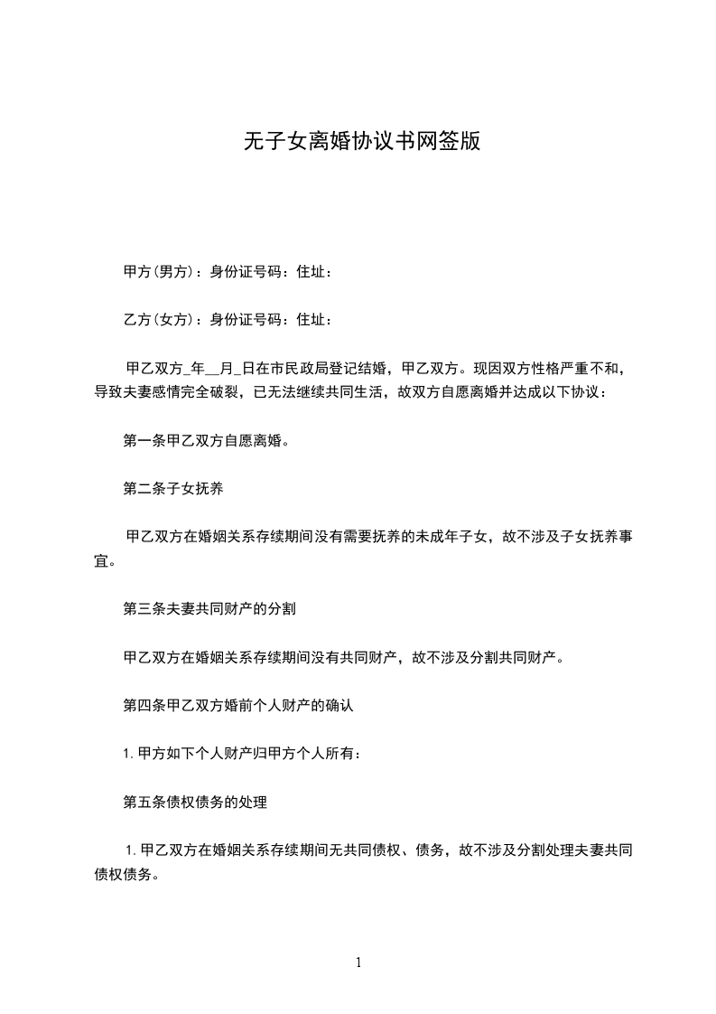 第一条甲乙双方自愿离婚。