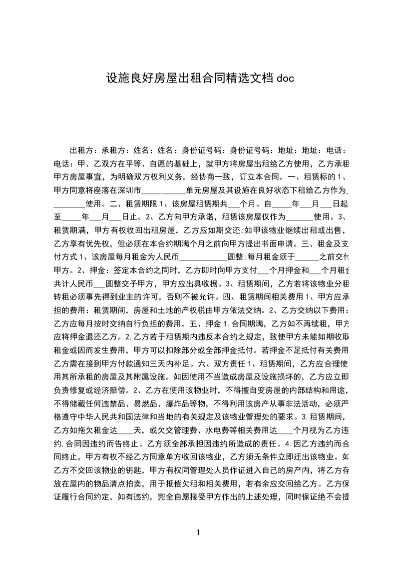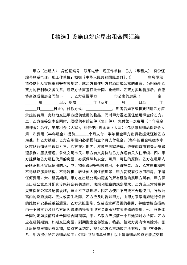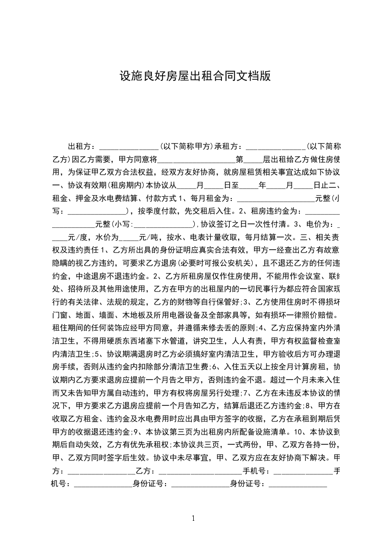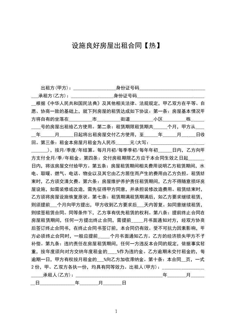一、甲方将位于_________市_________街道_________小区_________号楼_________号的房屋出租给乙方居住使用,租赁期限自_________年_________月_________日至_________年_________月_________日,计_________个月。