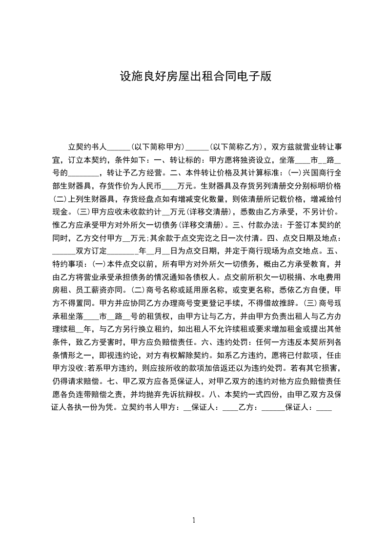 六、租赁期间,任何一方提出终止合同,需提前_________个月书面通知对方,经双方协商后签订终止合同书。若一方强行中止合同,须向另一方支付违约金_____元。