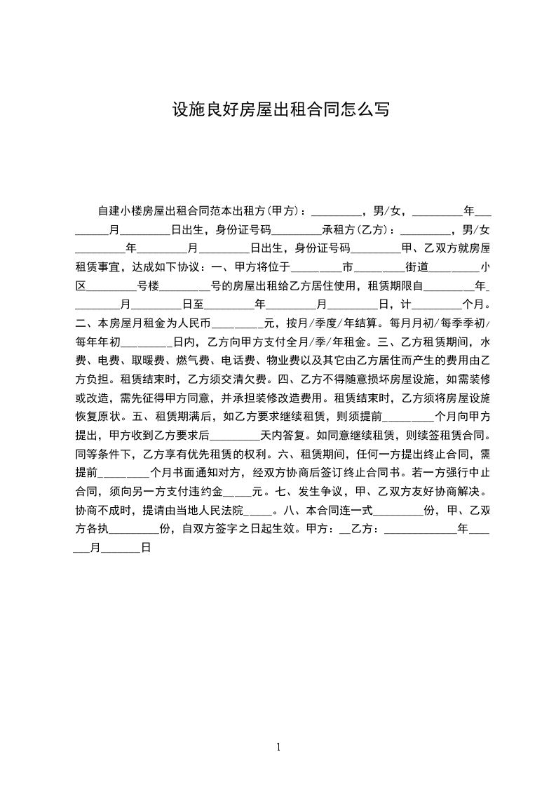 自建小楼房屋出租合同范本