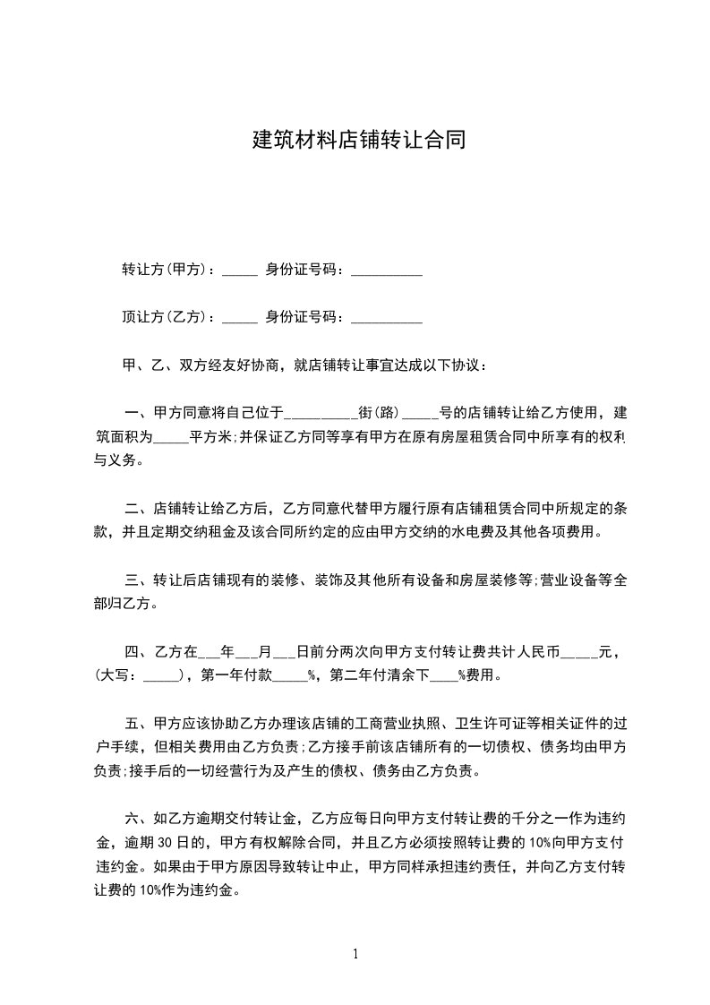 一、甲方同意将自己位于__________街(路)_____号的店铺转让给乙方使用,建筑面积为_____平方米;并保证乙方同等享有甲方在原有房屋租赁合同中所享有的权利与义务。