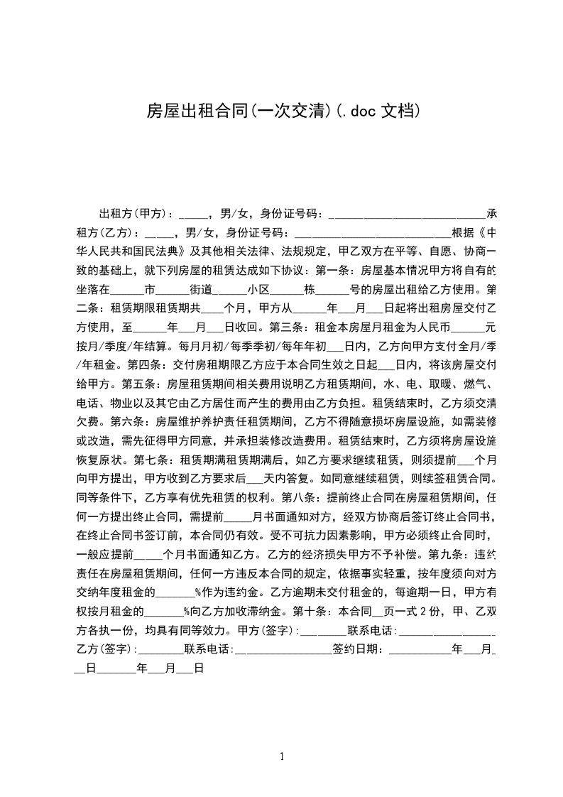 出租方(甲方):_____,男/女,身份证号码:___________________________