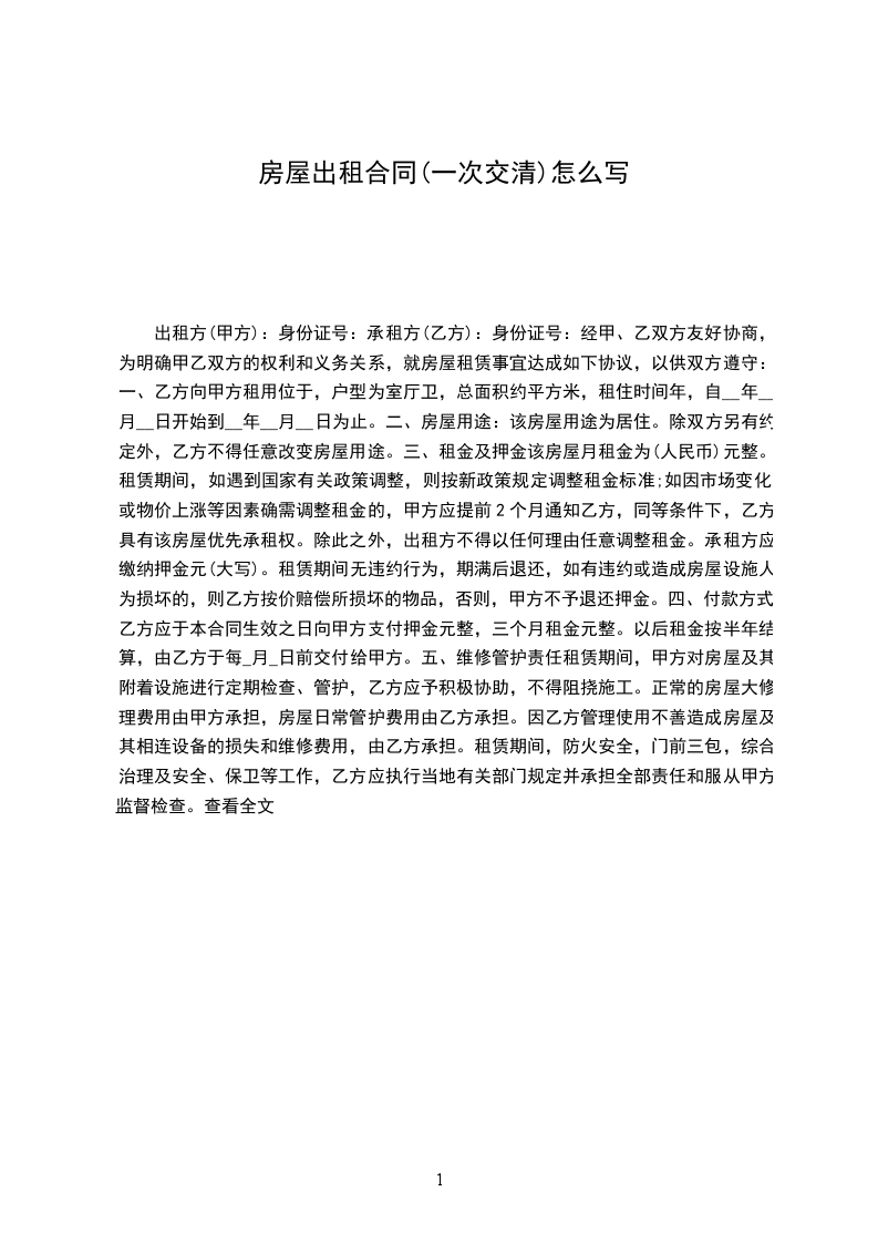 本房屋月租金为人民币______元,按月/季度/年结算。每月月初/每季季初/每年年初___日内,乙方向甲方支付全月/季/年租金。