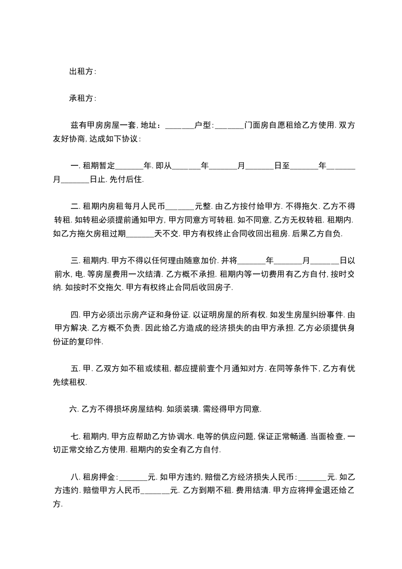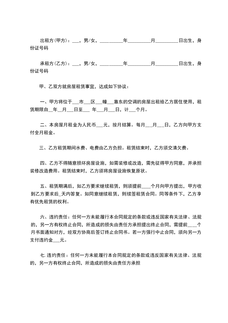 现经甲乙双方充分了解、协商,一致达成如下租房合同: