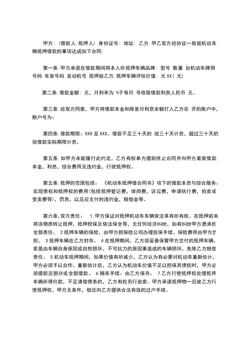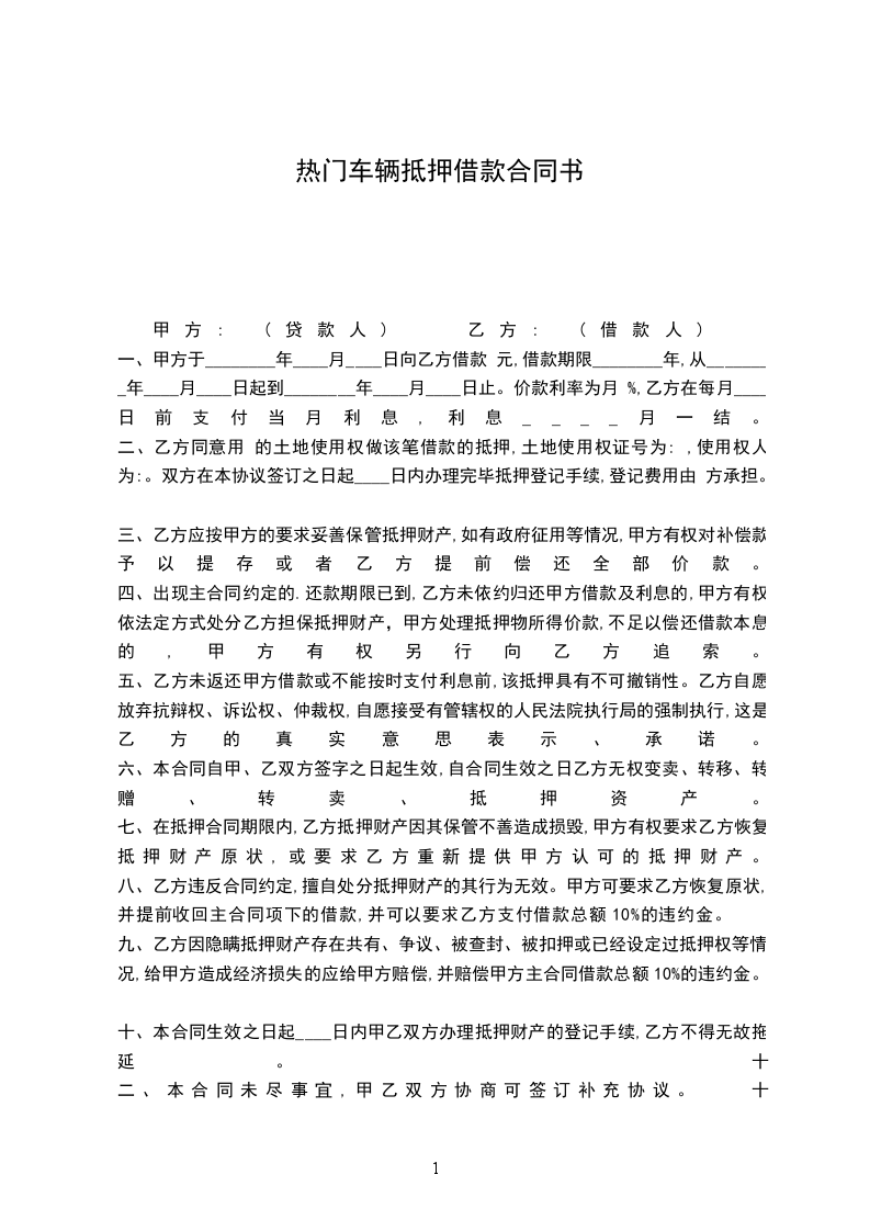 甲方因本人______需要,向乙方申请借款,并以自有车辆作为抵押物,汽车种类及牌号:______;车架号:______;发动机号:______。