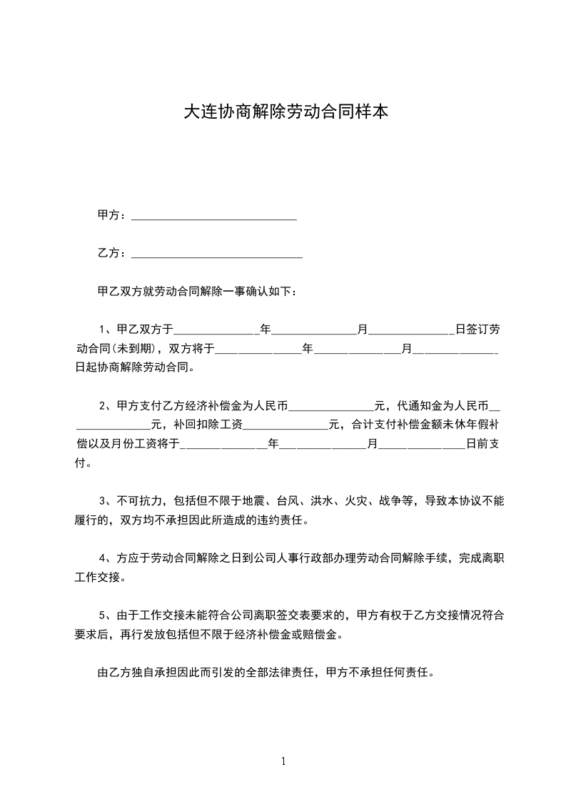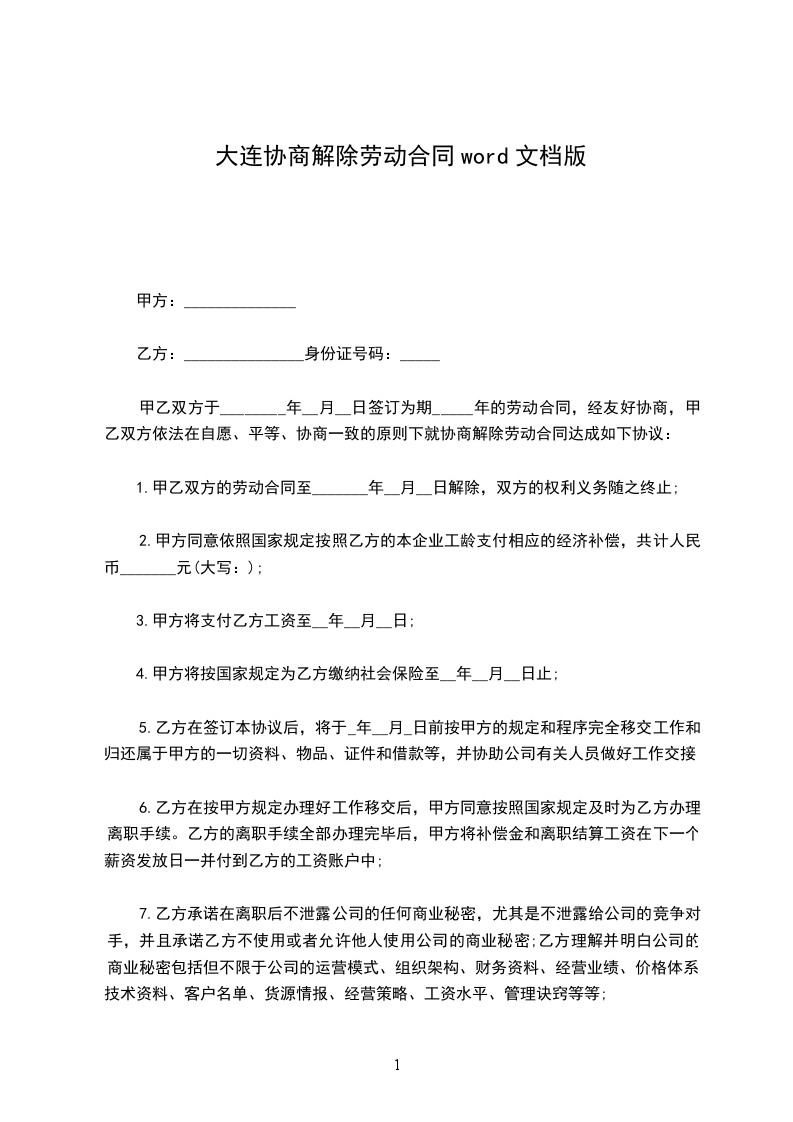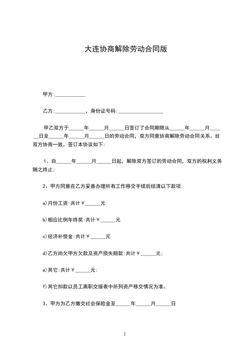 1.甲乙双方的劳动合同至_______年__月__日解除,双方的权利义务随之终止;
