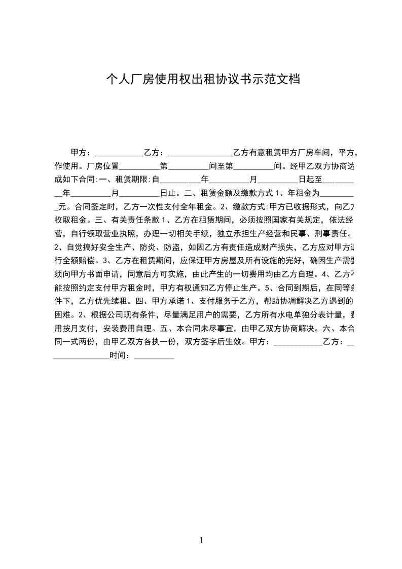乙方有意租赁甲方厂房车间,平方,作使用。厂房位置__________第__________间至第__________间。经甲乙双方协商达成如下合同: