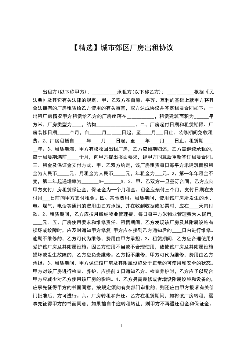 3、租赁期满,甲方有权收回出租厂房,乙方应如期归还,乙方需继续承租的,应于租赁期满前_____个月,向甲方提出书面要求,经甲方同意后重新签订租赁合同。