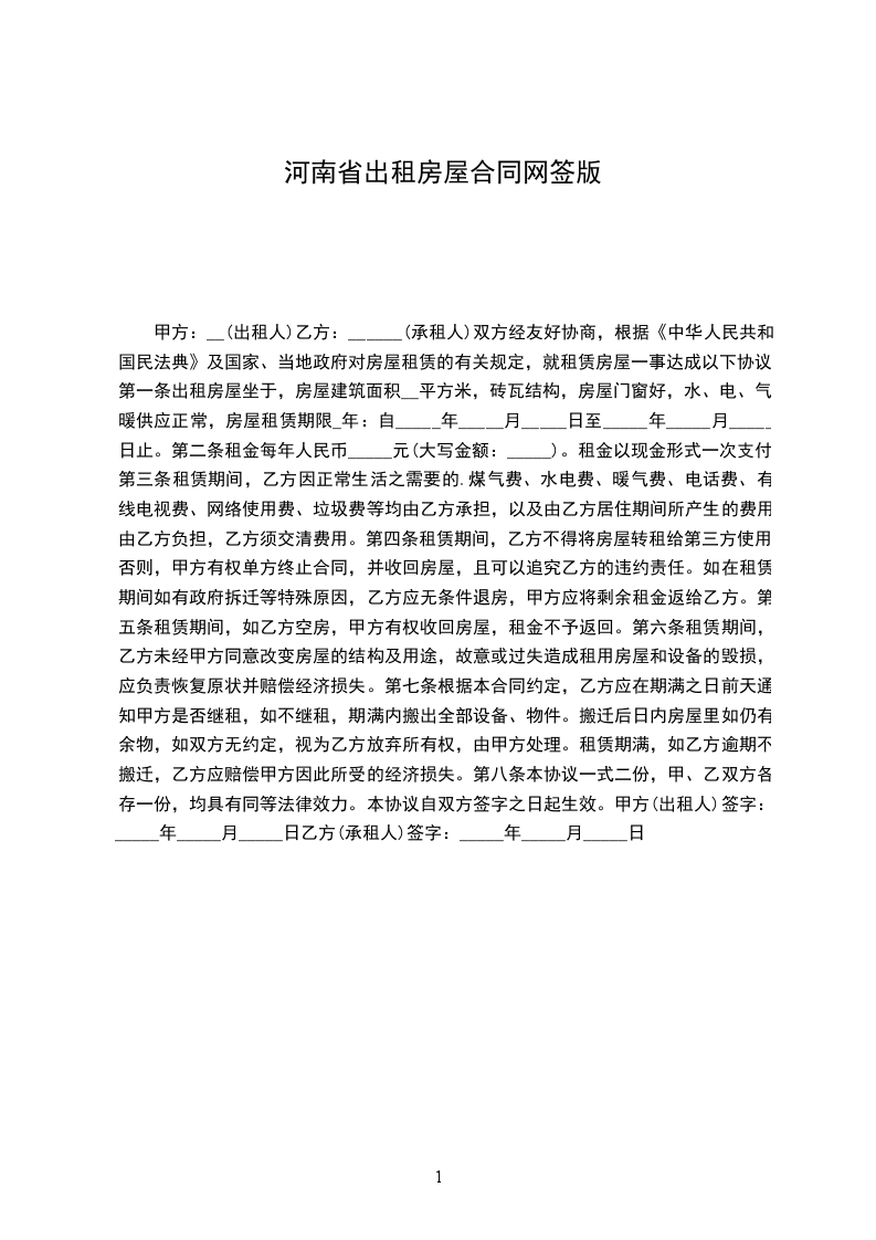第一条出租房屋坐于,房屋建筑面积__平方米,砖瓦结构,房屋门窗好,水、电、气、暖供应正常,房屋租赁期限_年:自_____年_____月_____日至_____年_____月_____日止。