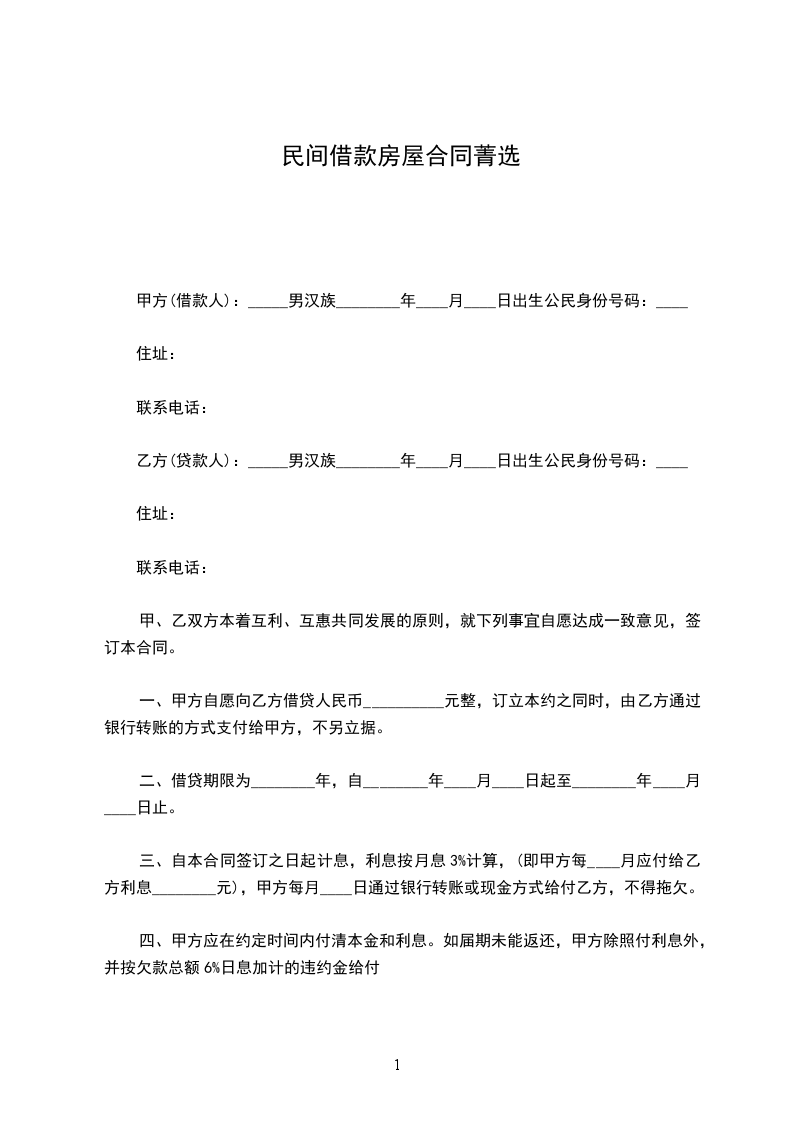 乙方(贷款人):_____男汉族________年____月____日出生公民身份号码:____