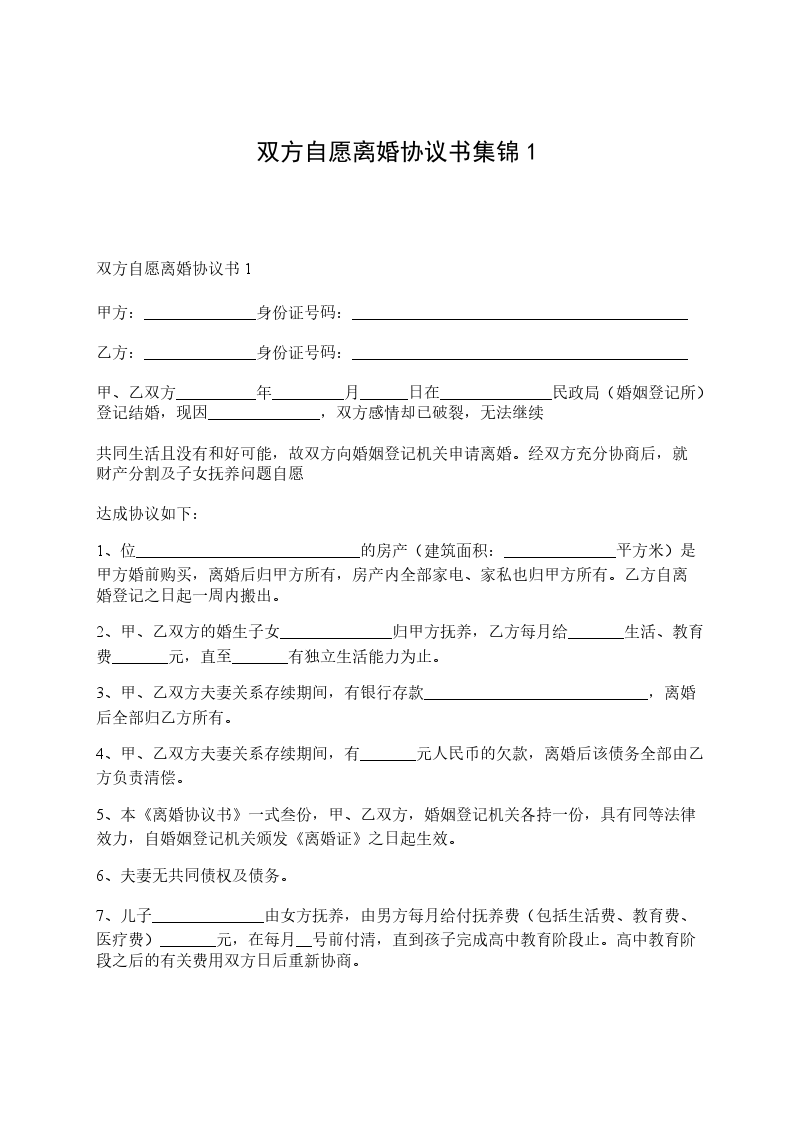 5、此协议一式三份,男女双方各持一份,交婚姻登记机关一份。自双方签字后生效。