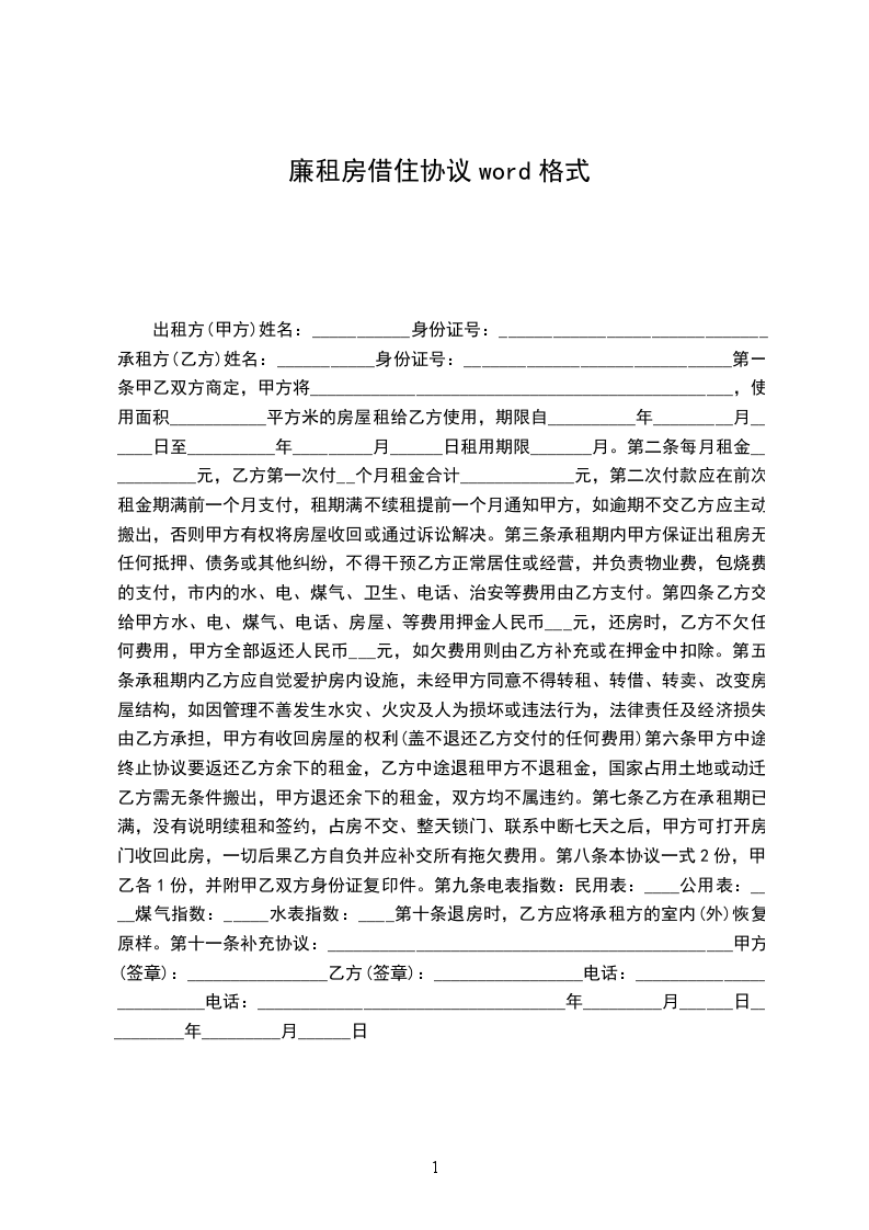 承租方(乙方)姓名:___________身份证号:______________________________