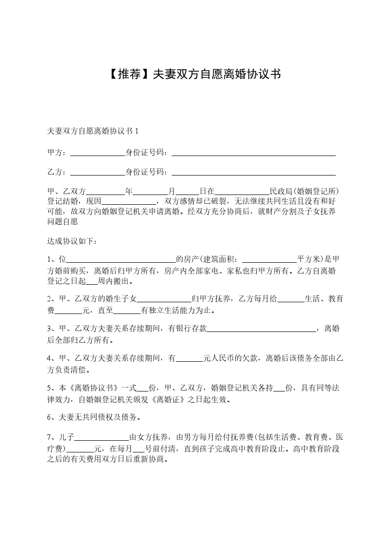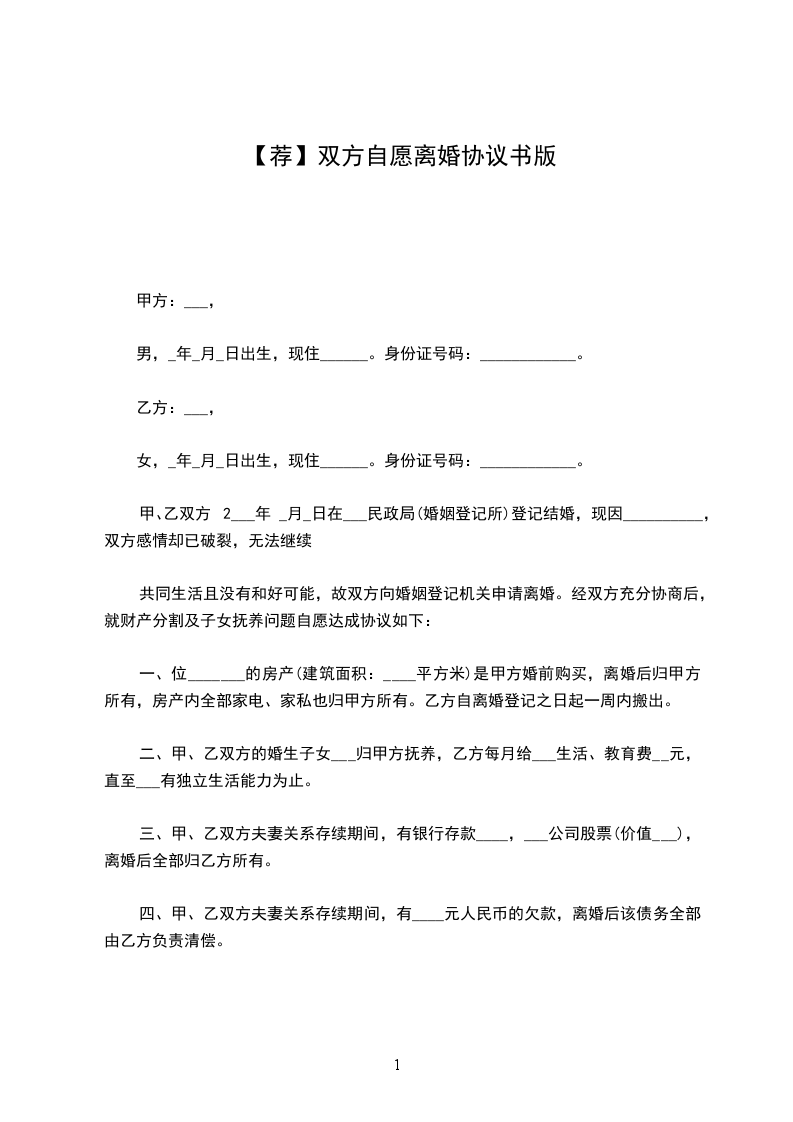 五、本《离婚协议书》一式叁份,甲、乙双方,婚姻登记机关各持一份,具有同等法律效力,自婚姻登记机关颁发《离婚证》之日起生效。