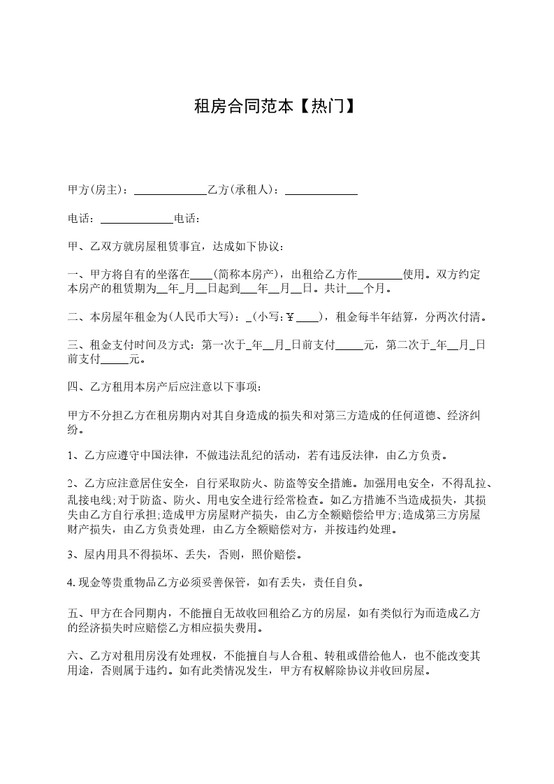 甲方(房主):_____________乙方(承租人):_____________