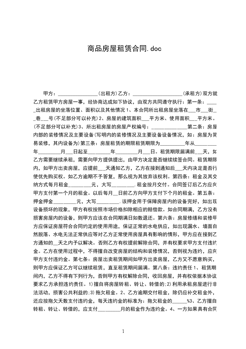 第十一条租赁期满租赁期满后,本合同即终止,届时乙方须将房屋退还甲方。如乙方要求继续租赁,则须提前____个月书面向甲方提出,甲方在合同期满前____个月内向乙方正式书面答复,如同意继续租赁,则续签租赁合同。