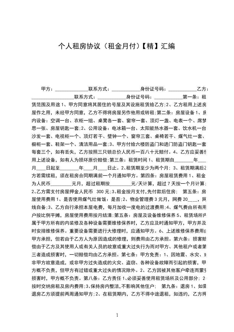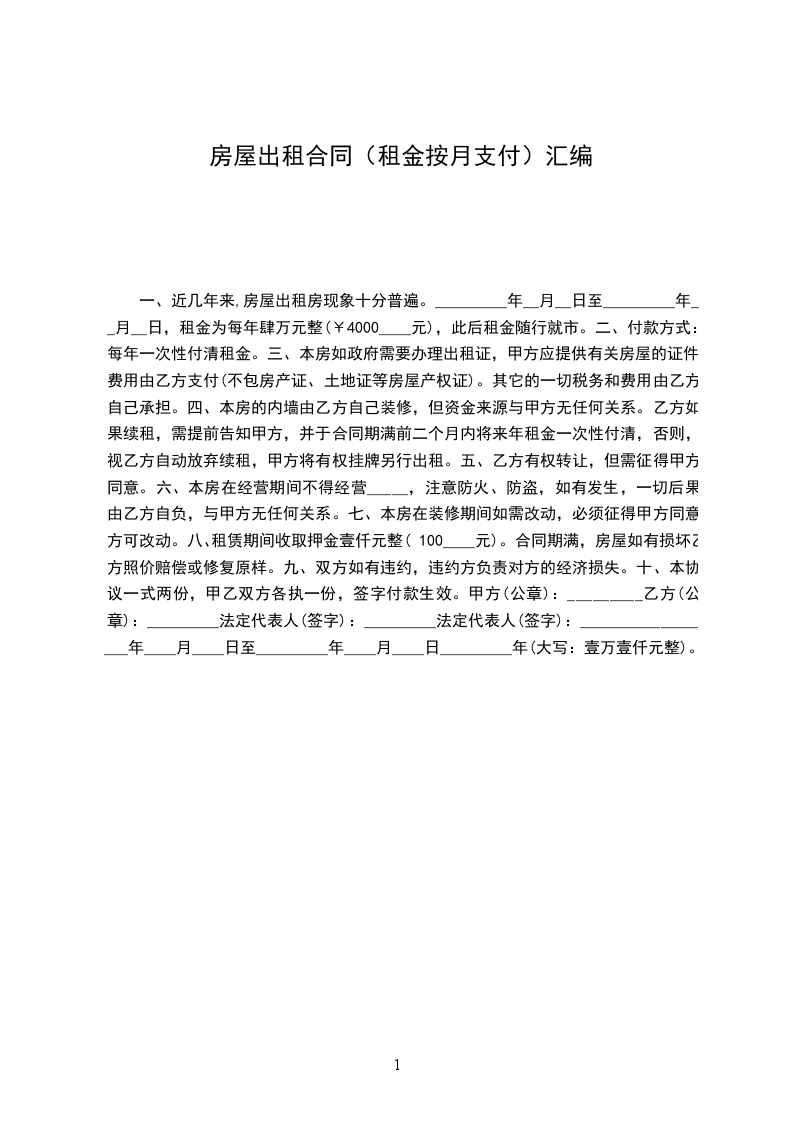 1、租金为人民币_________元月,超过租期按_________元/天计算,超过7天按一个月计算;