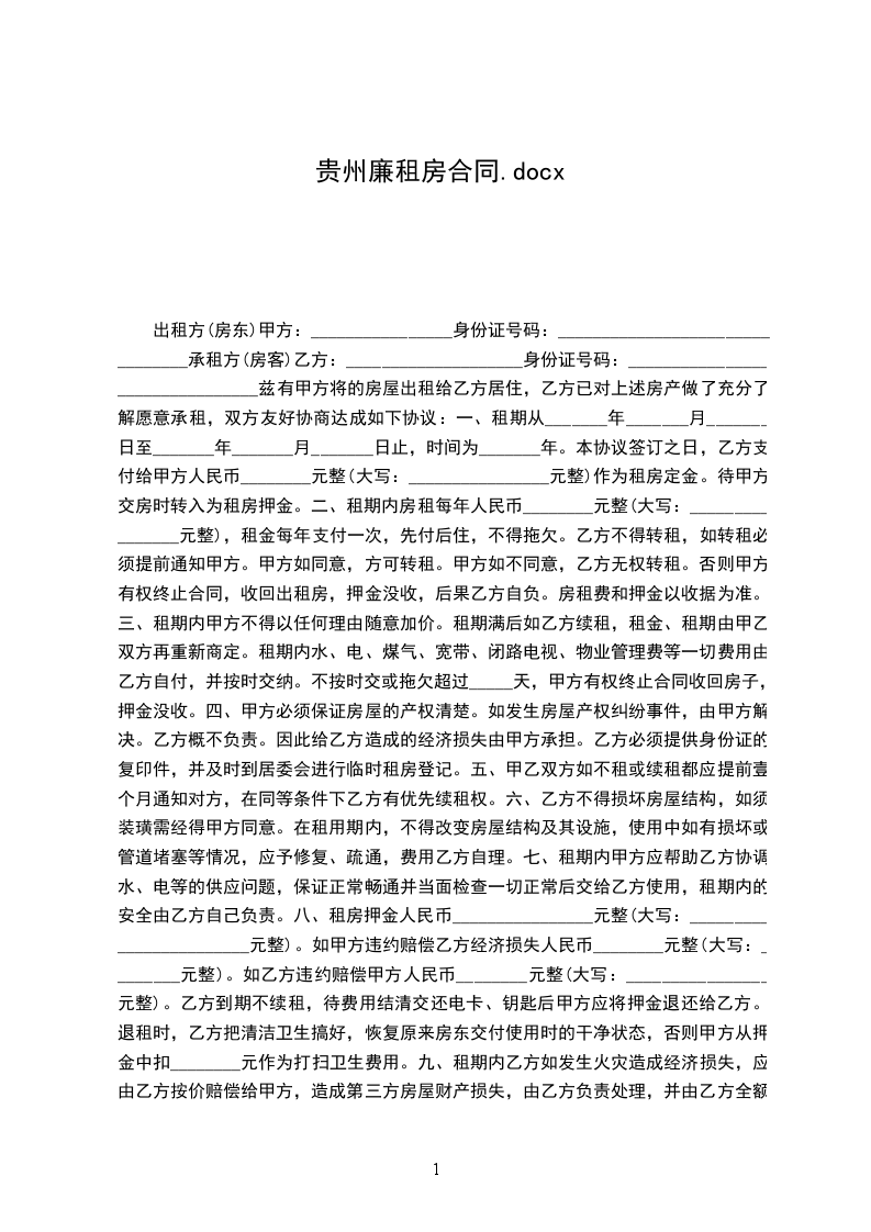 承租方(以下简称乙方):_____________身份证号:______________________