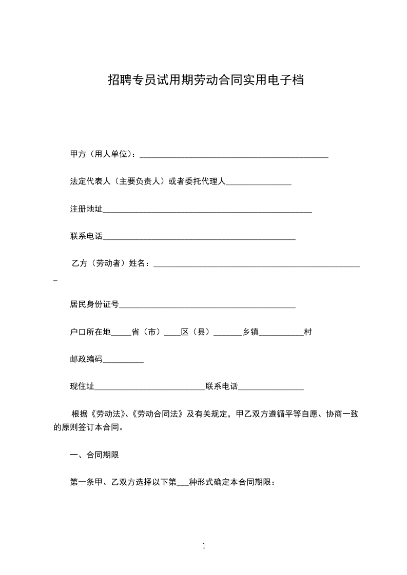 一、合同的类型和期限