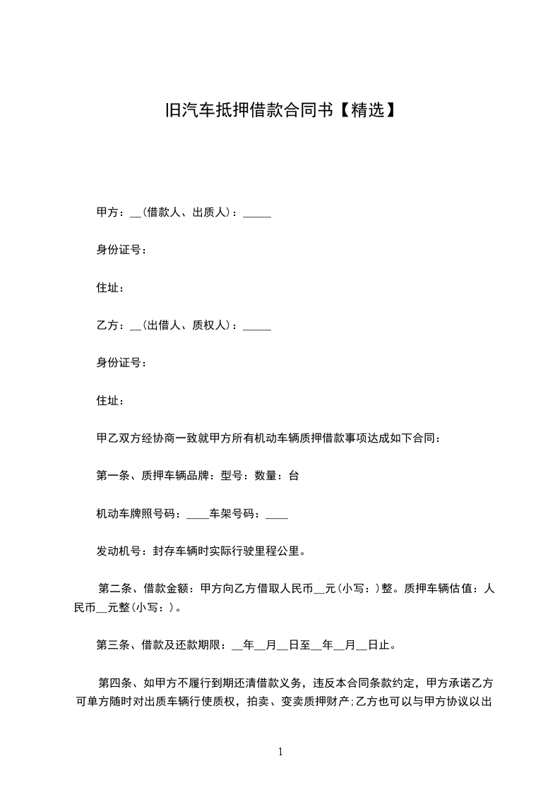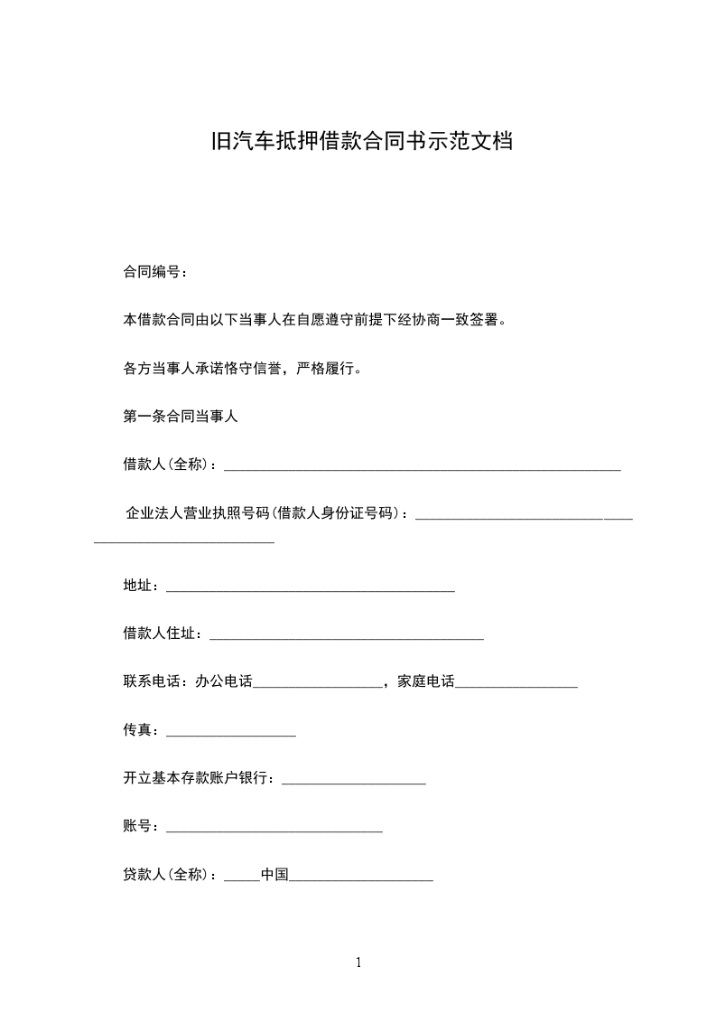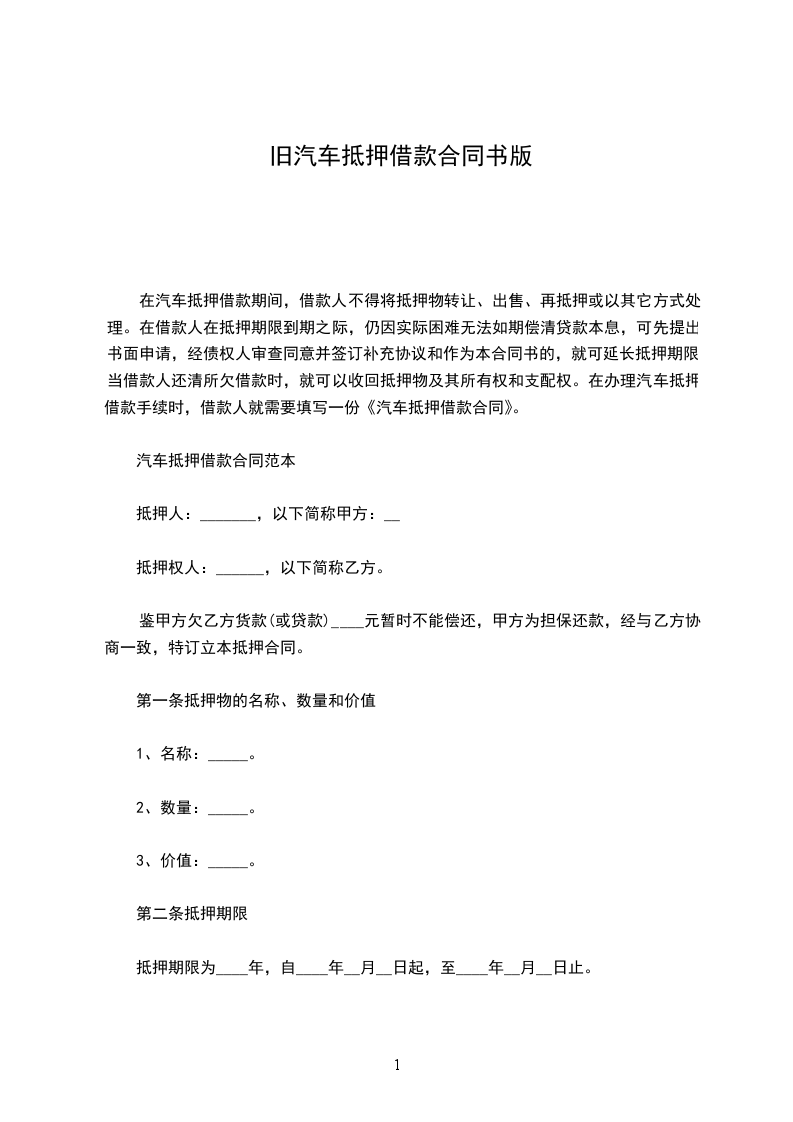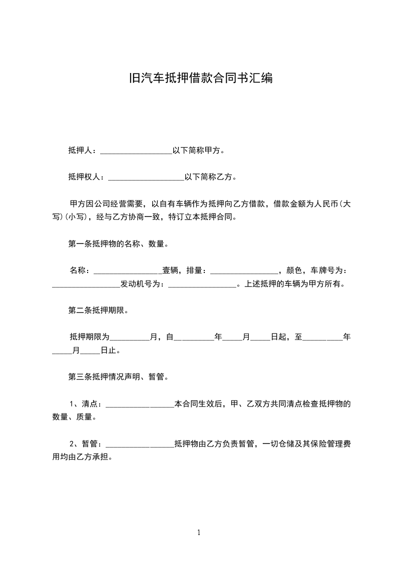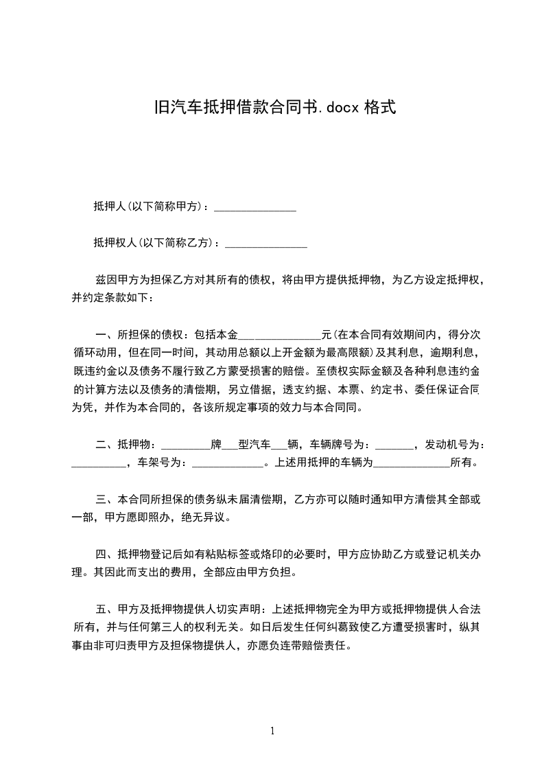 机动车牌照号码:______________________,车架号码:______________________,发动机号:__________________,抵押给甲方,抵押车辆估计价值:人民币____________元。