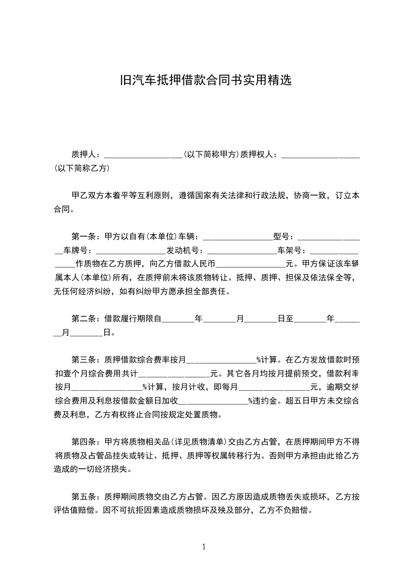 第一条、乙方承诺在借款期间将本人所抵押车辆品牌:型号:__________________,数量:______台