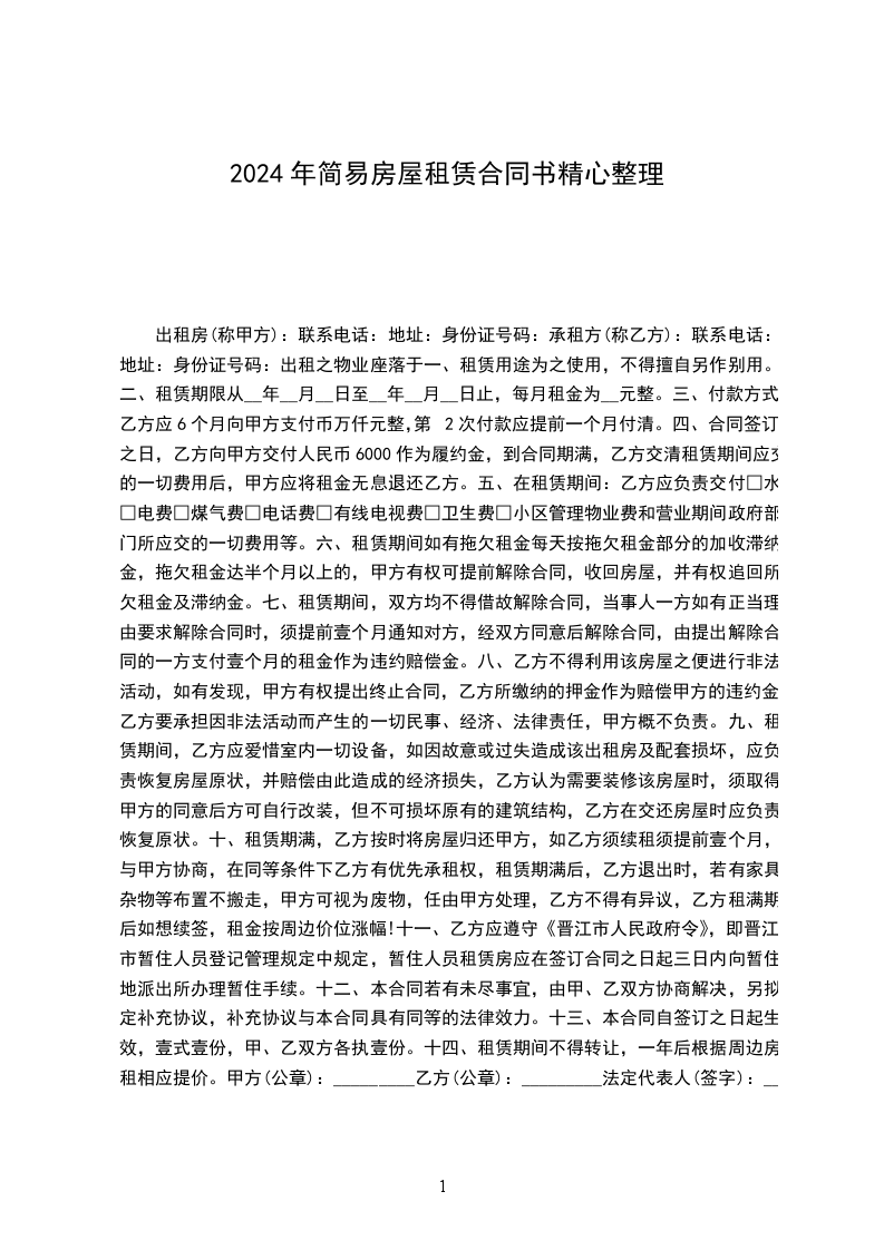 出租方(以下简称甲方)__________________