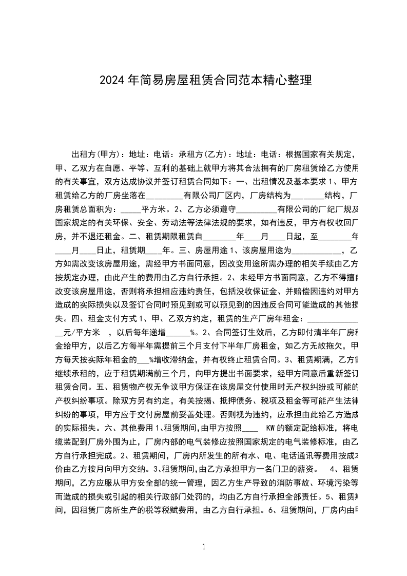 3.经双方协商该房屋第一年租金为__元;以后每年递增____%.租金一年一付,乙方应于每__年__月__日前,向甲方支付下一年租金。