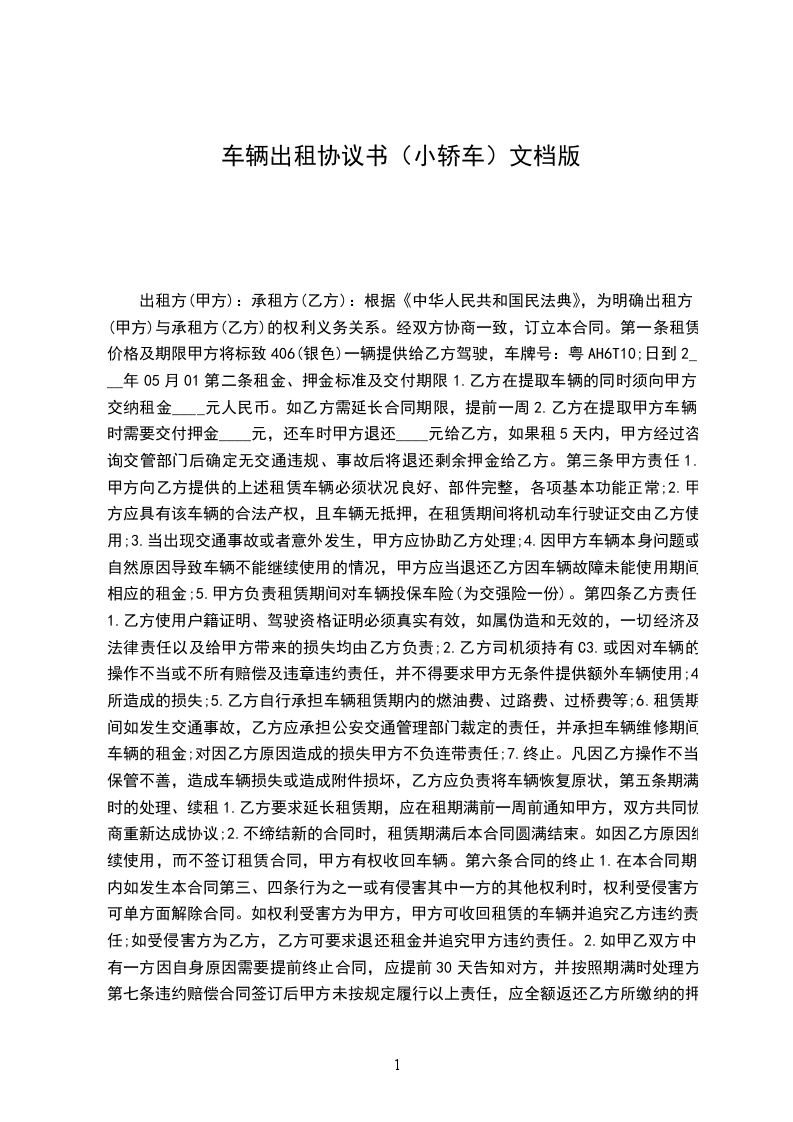 甲方将标致406(银色)一辆提供给乙方驾驶,车牌号:粤AH6T10;日到2___年05月0
