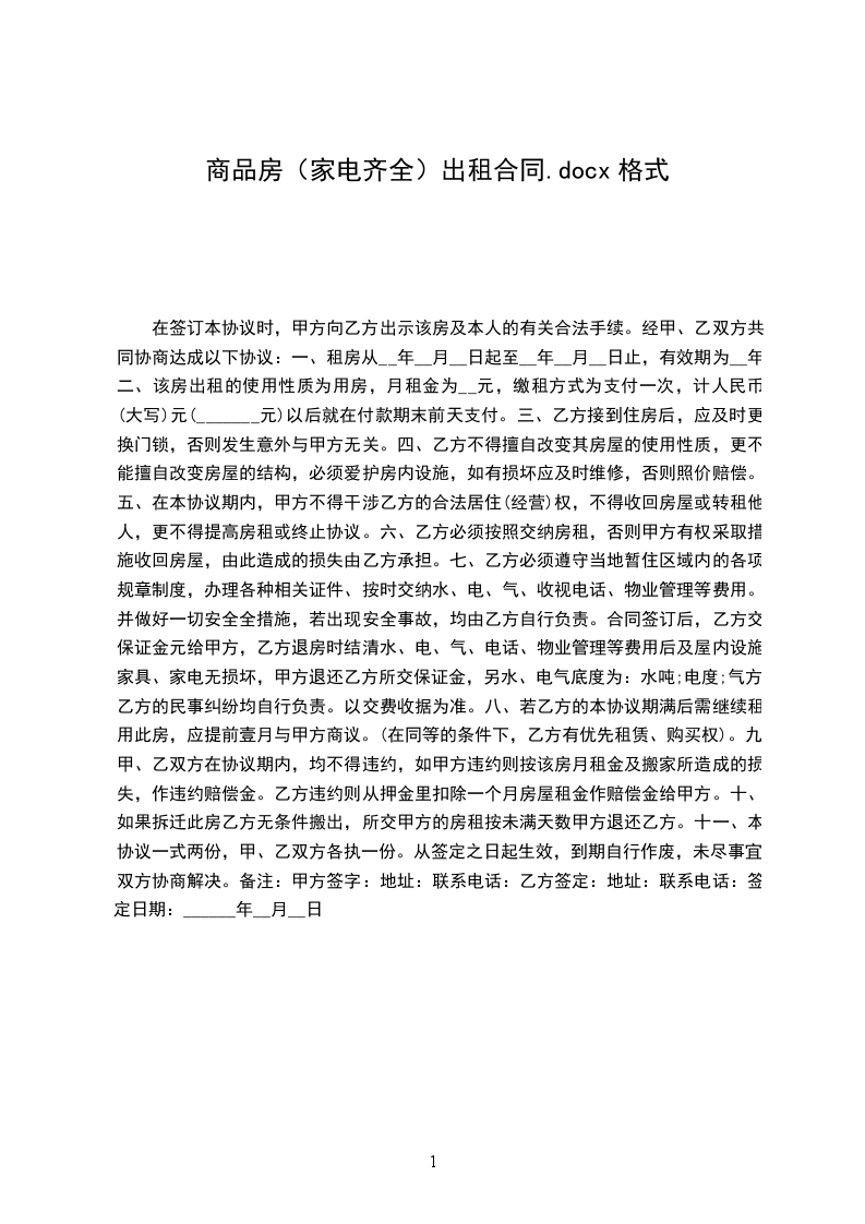 一、为明确甲乙双方的权利及义务,根据《民法典》的有关规定,特制定本合同以便双方共同遵守。甲方将路号房屋一幢按现状出租给乙方做使用。