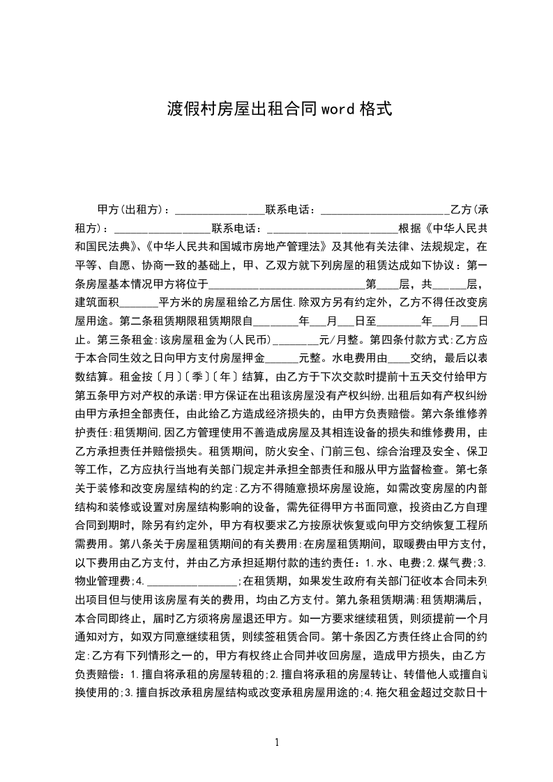 第三条租金:该房屋租金为(人民币)________元/月整。