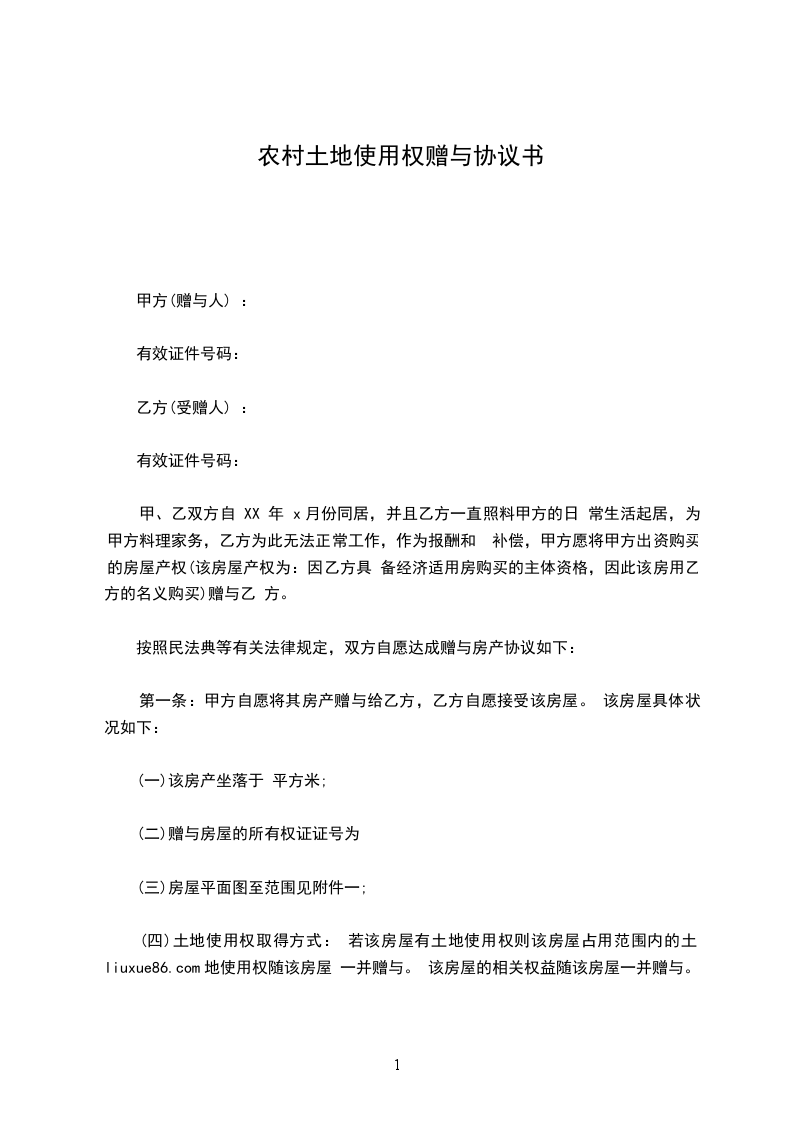 (四)土地使用权取得方式: 若该房屋有土地使用权则该房屋占用范围内的土地使用权随该房屋 一并赠与。 该房屋的相关权益随该房屋一并赠与。
