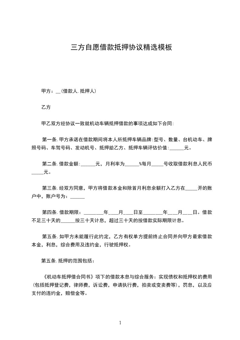 第一条.甲方承诺在借款期间将本人所抵押车辆品牌:型号、数量、台机动车、牌照号码、车驾号码、发动机号、抵押給乙方、抵押车辆评估价值:______元。